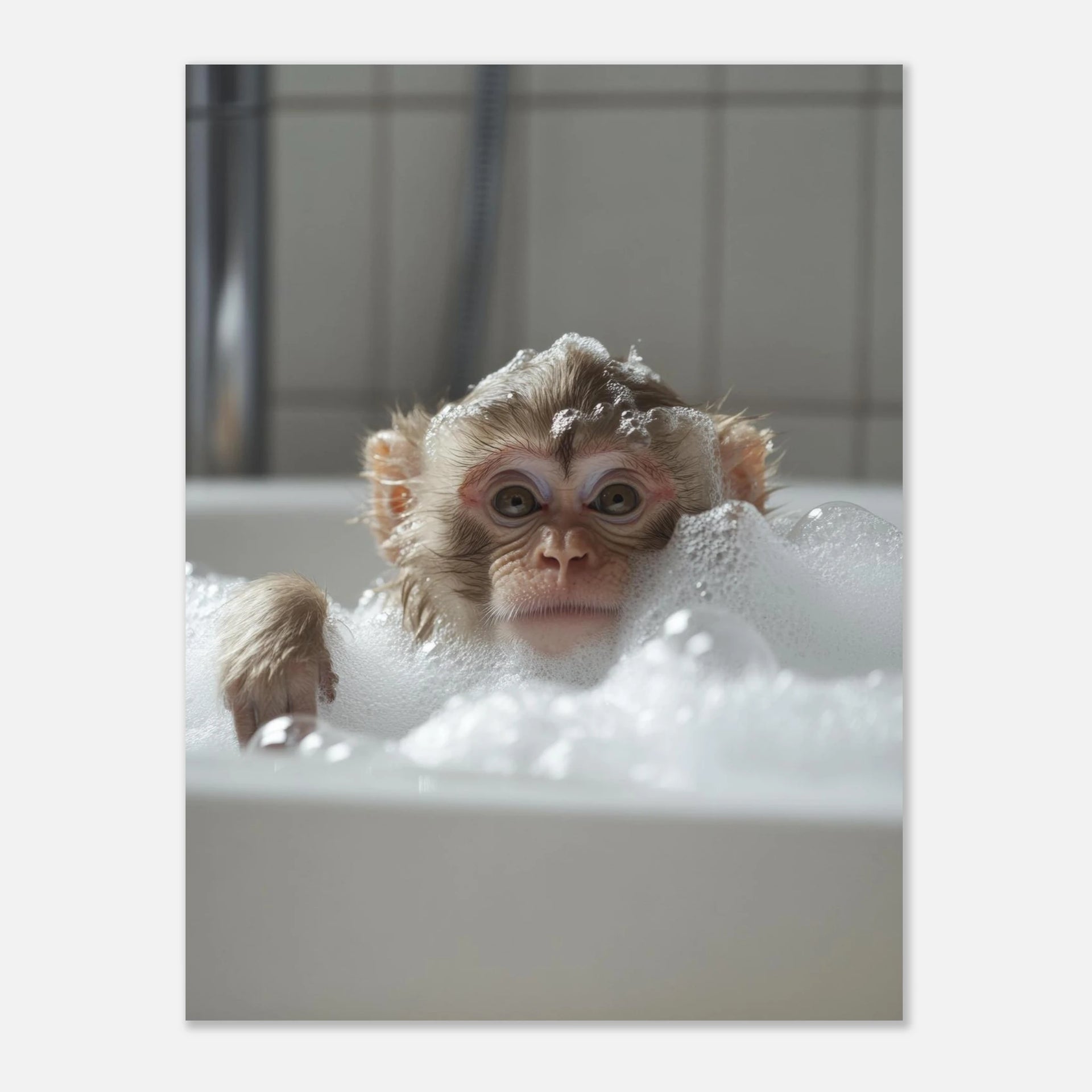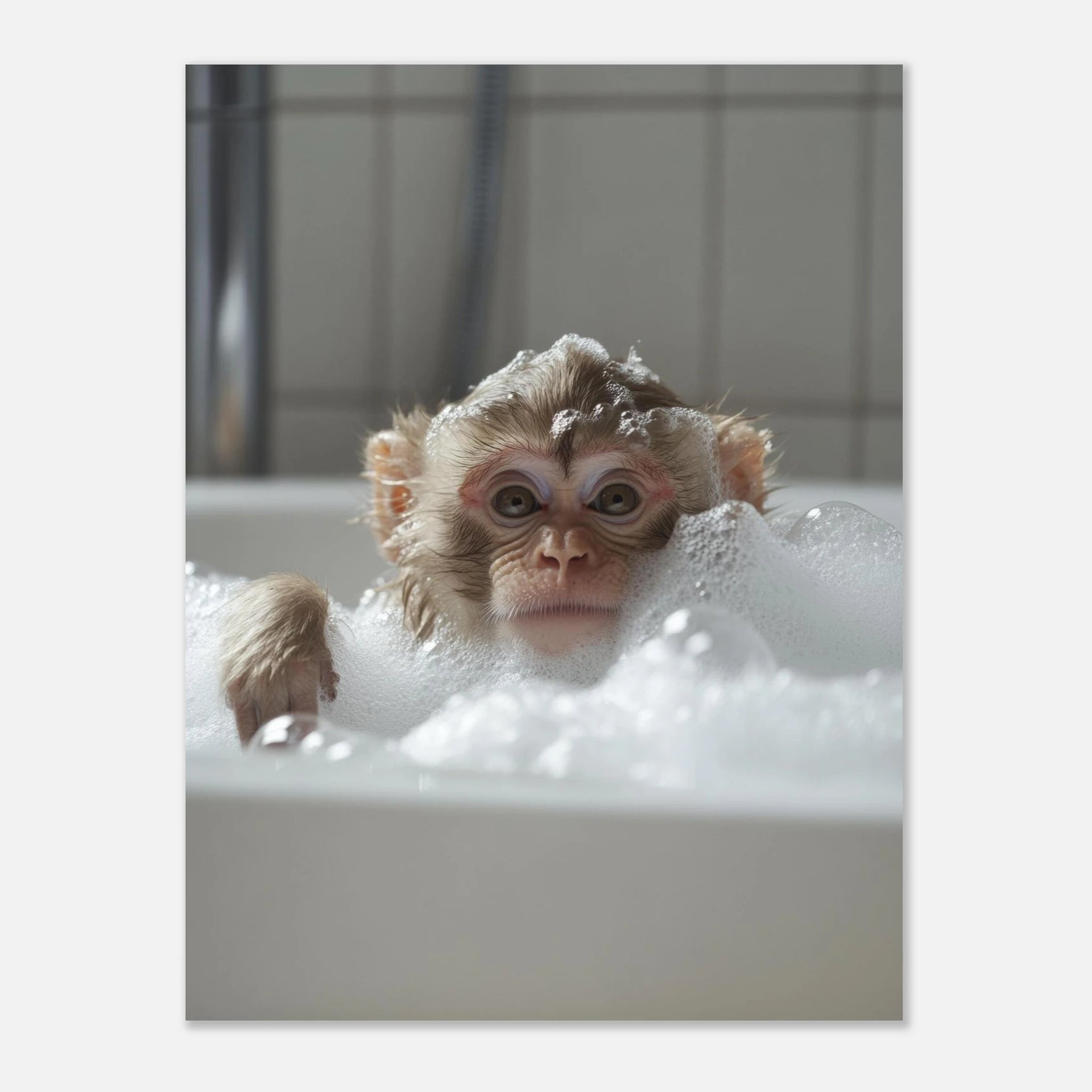Bring a splash of unexpected delight into your home with this captivating print featuring a charming baby monkey enjoying a bubbly bath. Its wide-eyed innocence and the playful texture of the suds create a heartwarming and utterly unique piece of art that’s sure to spark conversation and smiles. Perfect for nurseries, bathrooms, or any space needing a touch of whimsical charm, this artwork captures a moment of pure, refreshing joy.