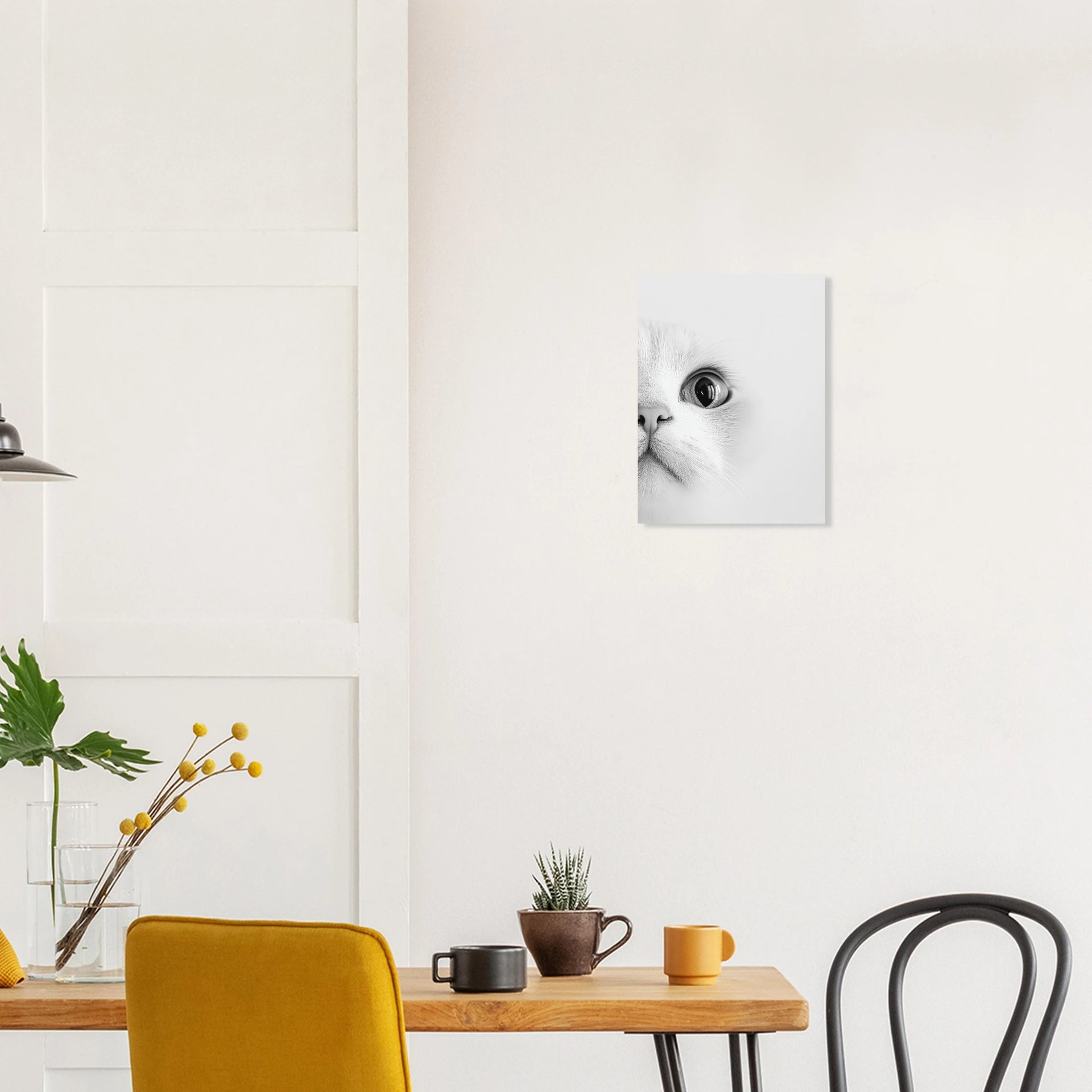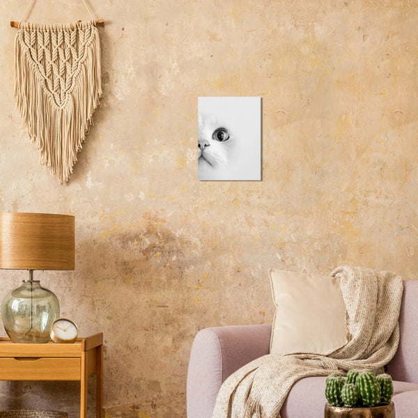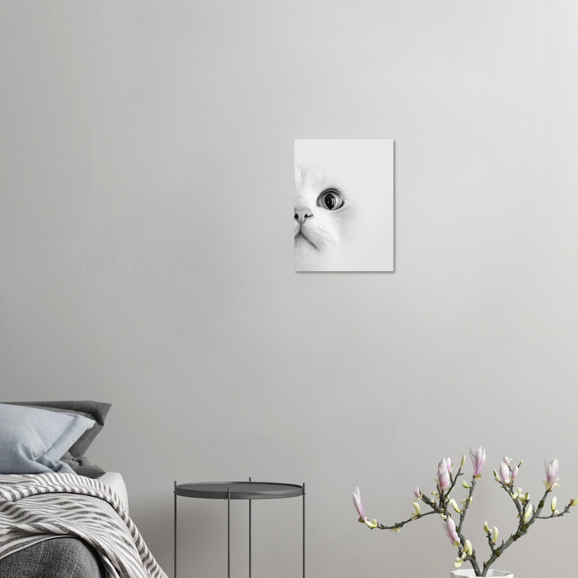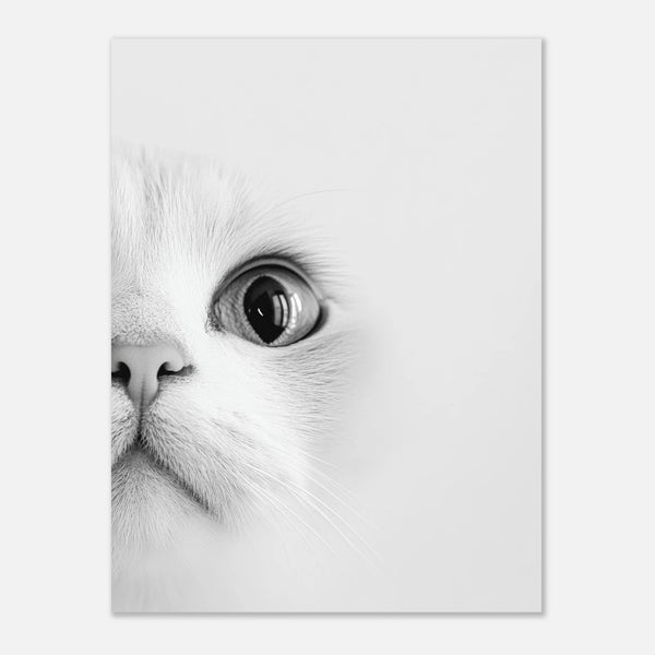 Unveil the captivating mystery of the feline world with our 'Mysterious Feline Gaze' art print. This stunning black and white piece zooms in on the expressive eye and delicate features of a cat, capturing a moment of profound depth and gentle curiosity. Perfect for cat lovers and modern art enthusiasts alike, this print brings a serene yet striking elegance to any space, inviting a second look and endless contemplation.