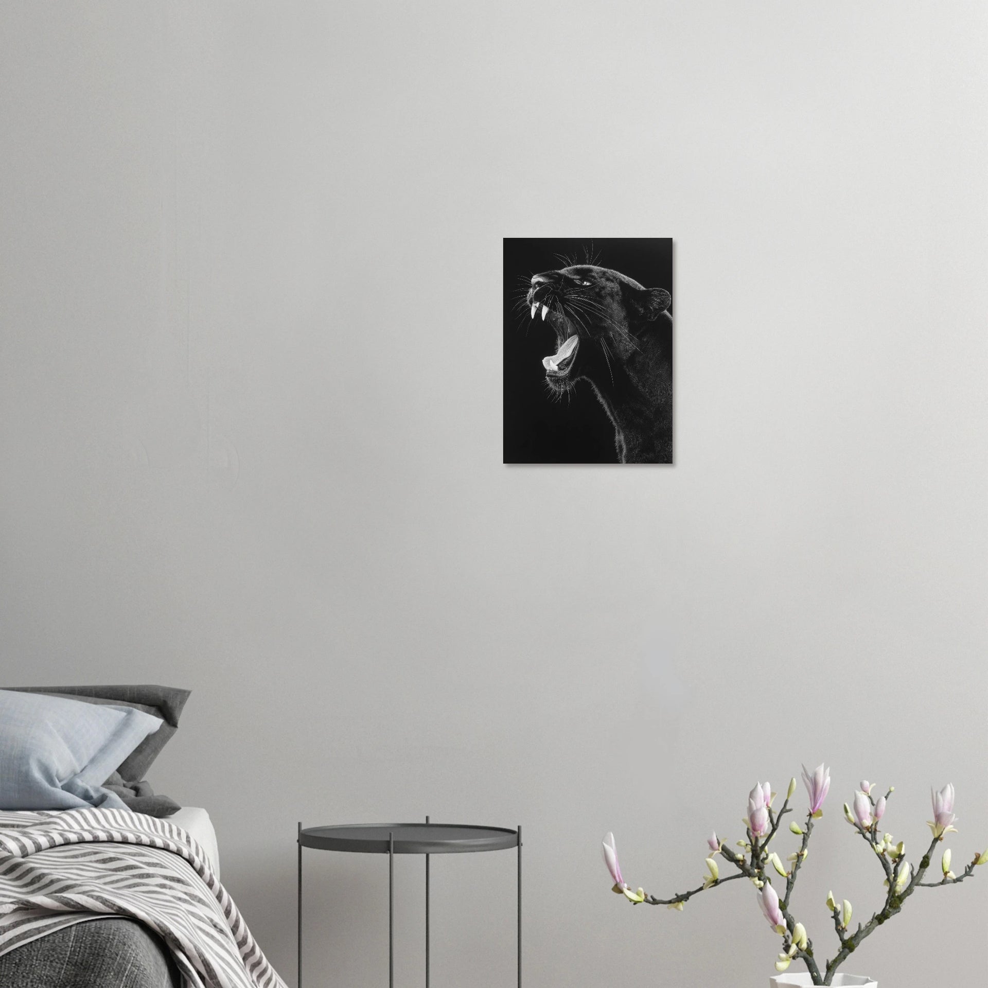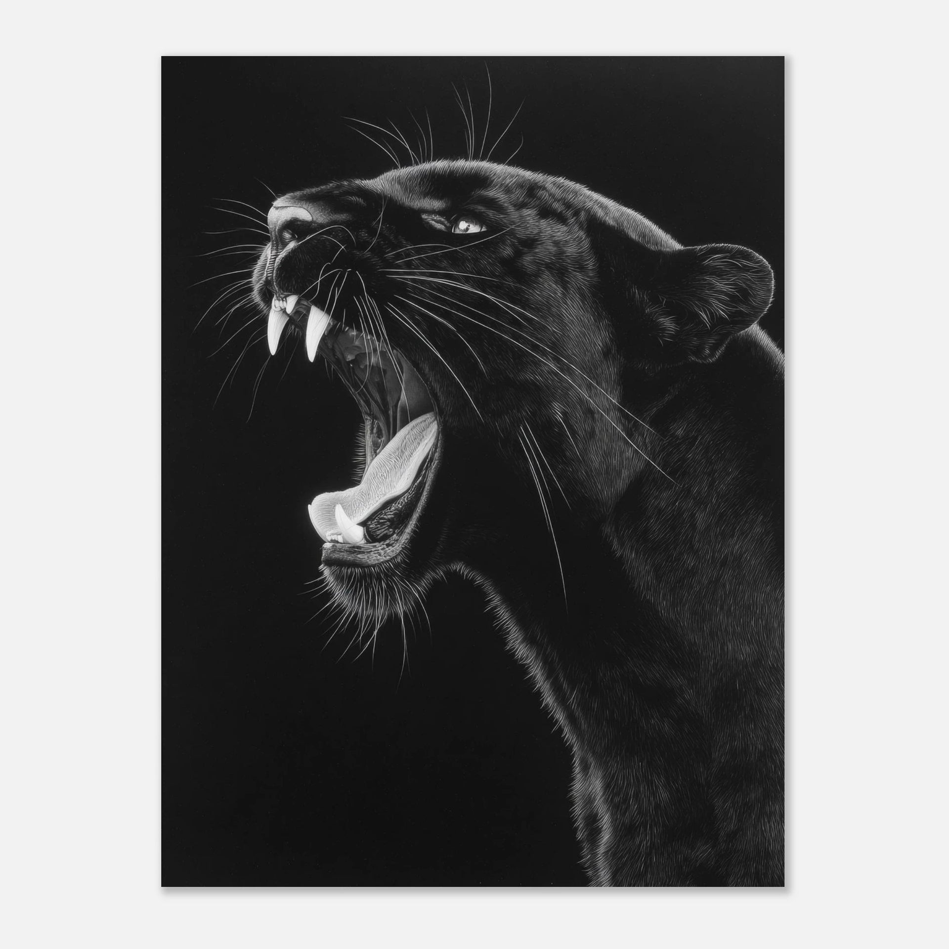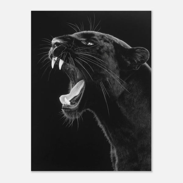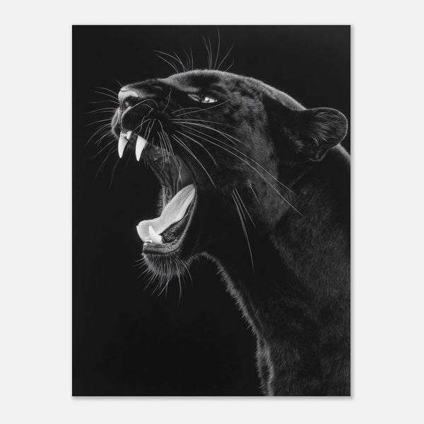 Unleash the wild power and mesmerizing beauty of the jungle's most elusive predator with our Roaring Black Panther Art Print. This striking black and white depiction captures the raw intensity and intricate detail of a panther mid-roar, bringing a commanding presence to any space. The dramatic contrast and lifelike textures make this a true statement piece for art enthusiasts and wildlife lovers alike.