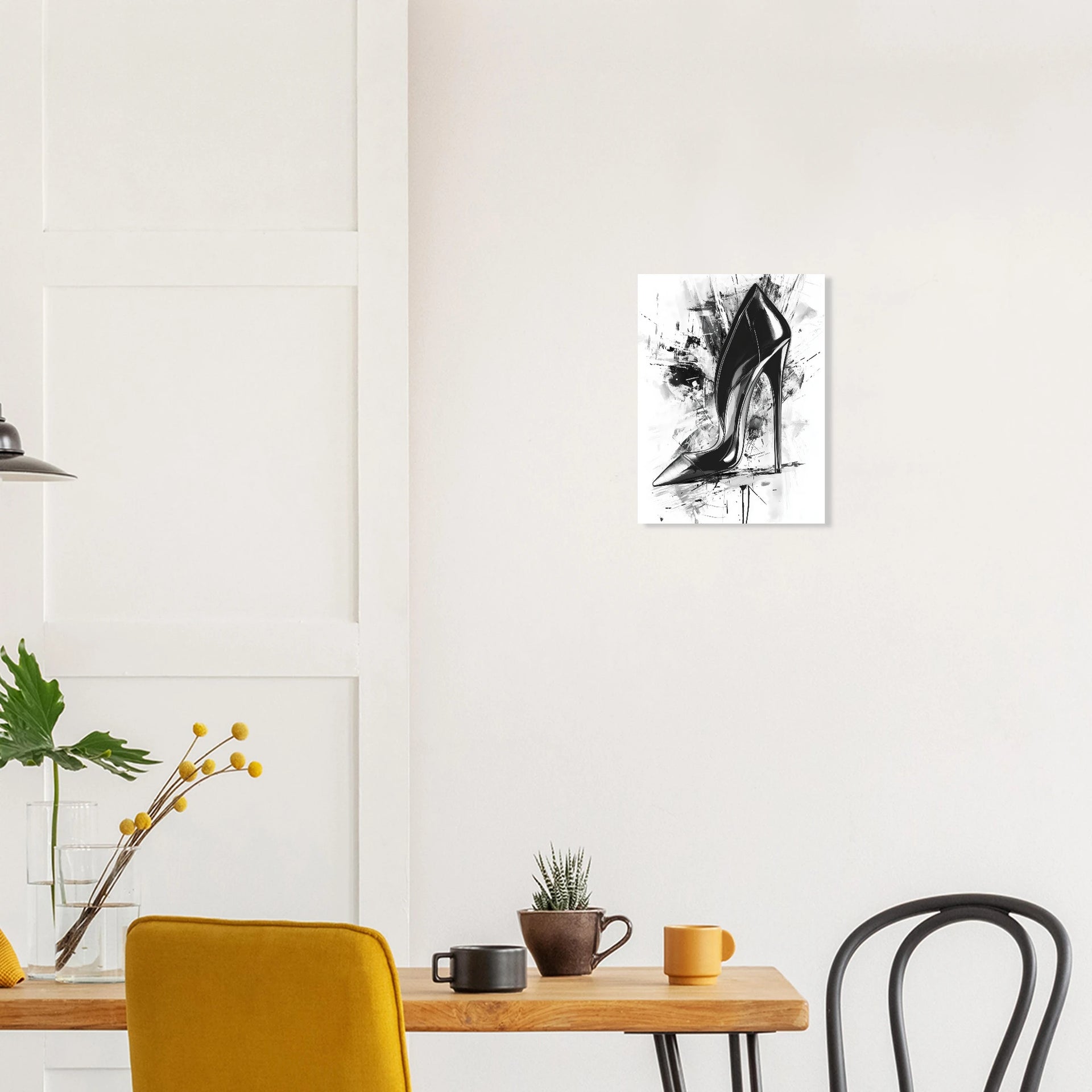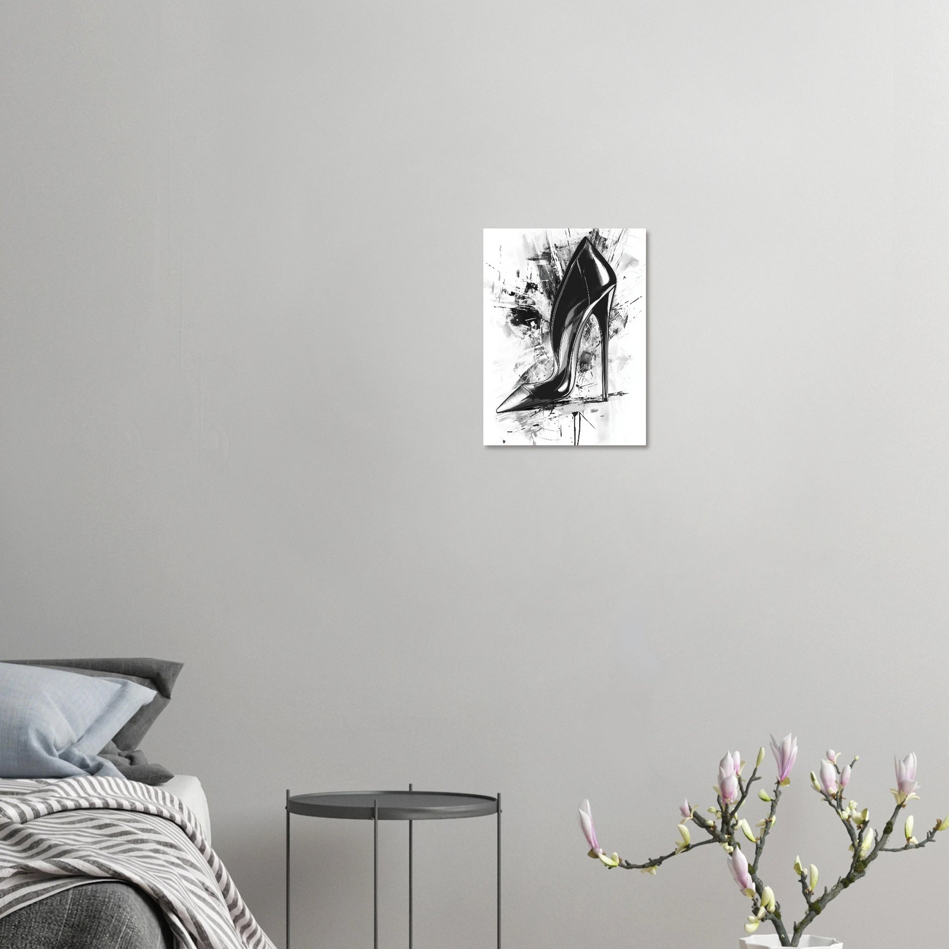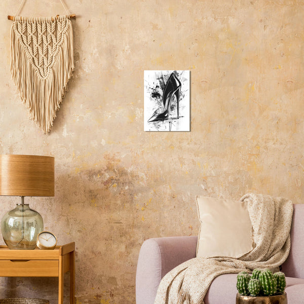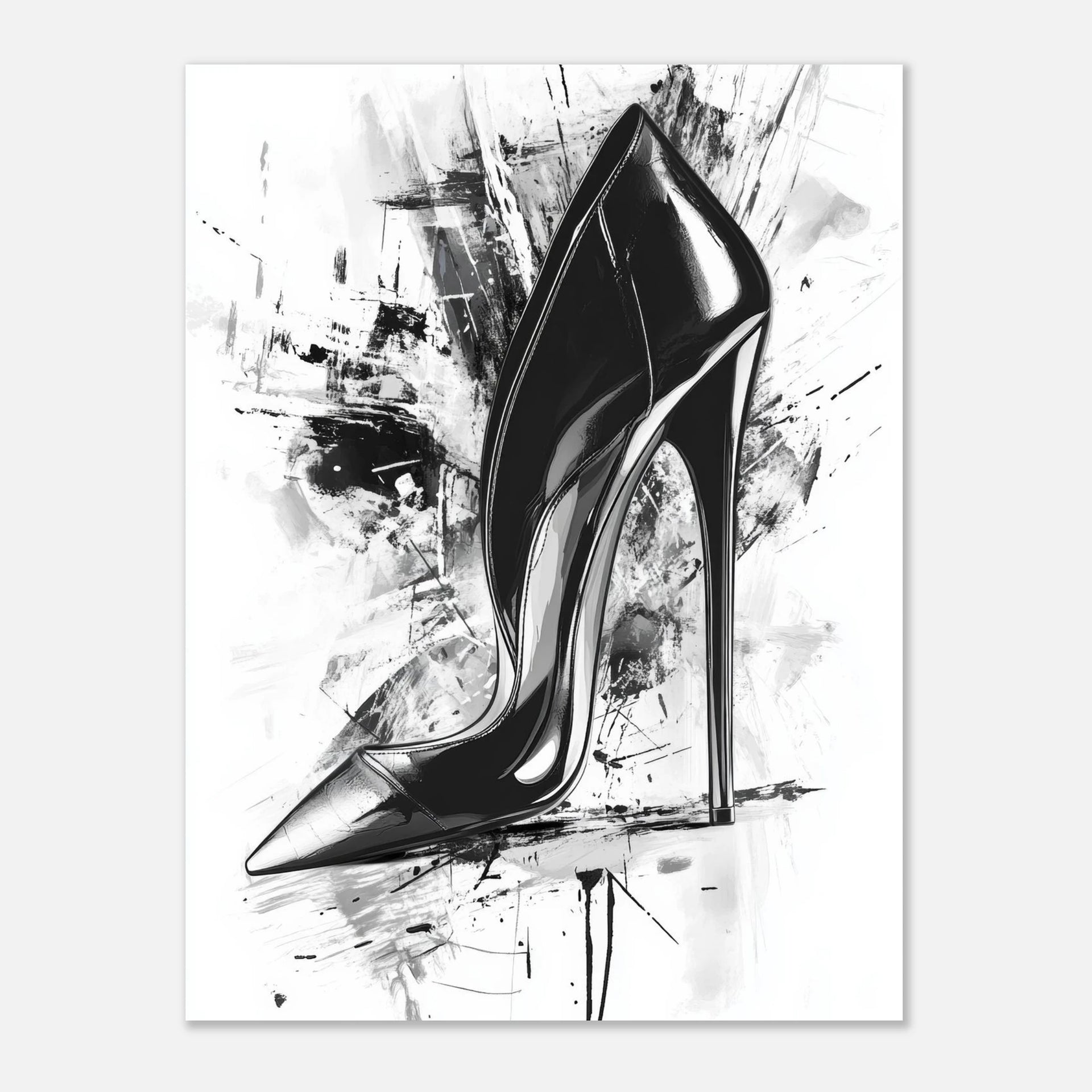 Unleash a statement of sophisticated rebellion with our captivating Black Stiletto Heel Abstract Art Print Poster. This piece marries the fierce elegance of a high heel with dynamic, expressive brushstrokes, creating a visually striking black and white masterpiece that commands attention.