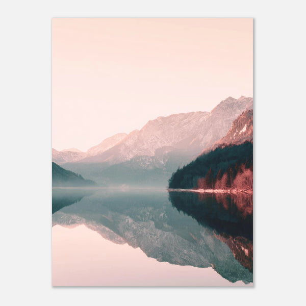 Immerse yourself in the tranquil beauty of our Serene Mountain Lake Landscape Art Print. This piece captures a breathtaking vista where misty peaks meet the calm, reflective waters, bathed in a soft, ethereal glow. The gentle pastel horizon blends seamlessly with deep, moody tones of the forest, creating a captivating contrast that evokes a sense of peace and natural wonder. It's an ideal choice for bringing a sophisticated, calming presence to any room, inviting a moment of quiet contemplation.