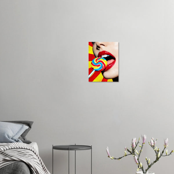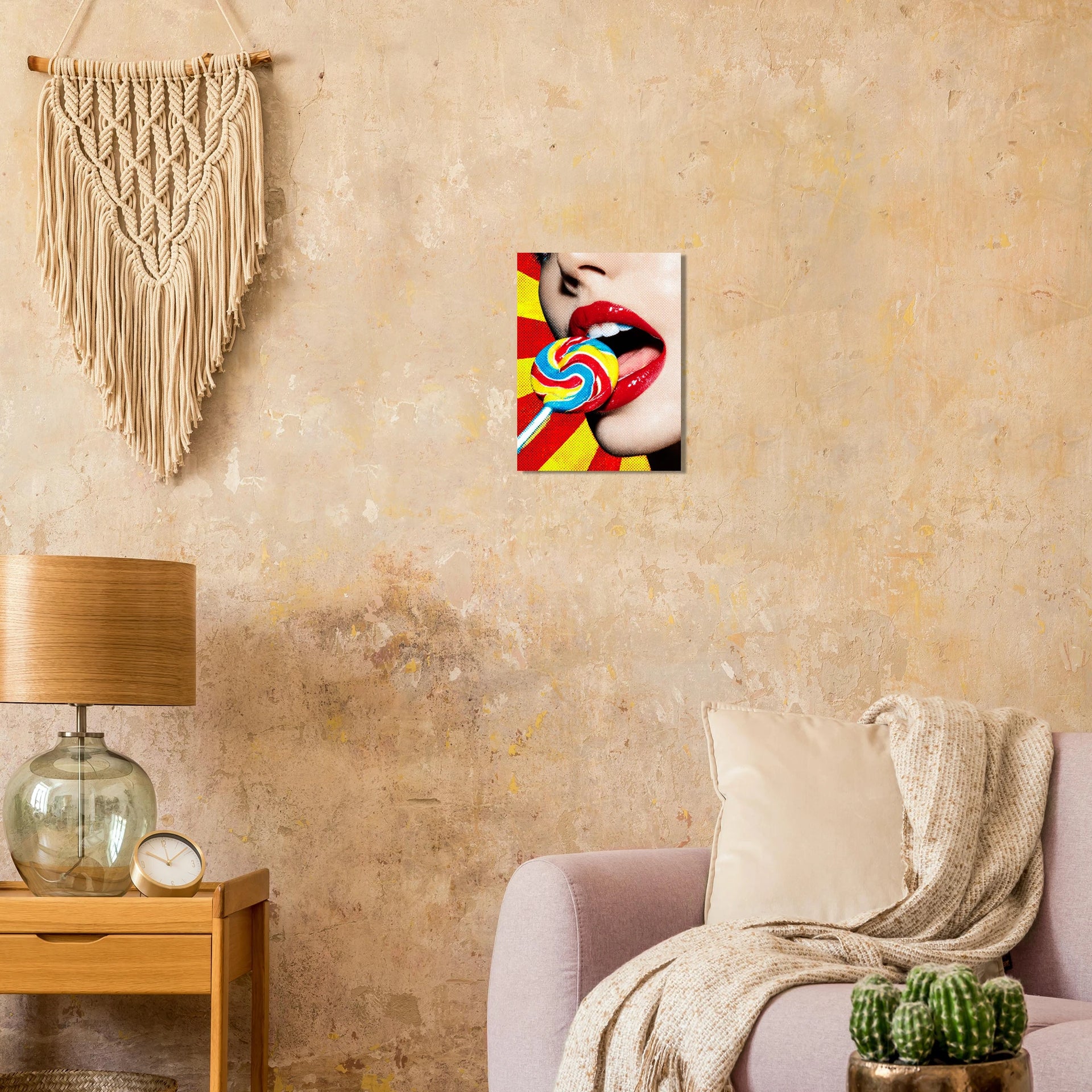 Infuse any room with the irresistible pop-culture energy of a candy kiss captured in vibrant halftones. This eye-catching art print doesn’t just decorate walls—it sparks conversation and sweetens your space with a burst of retro flair.