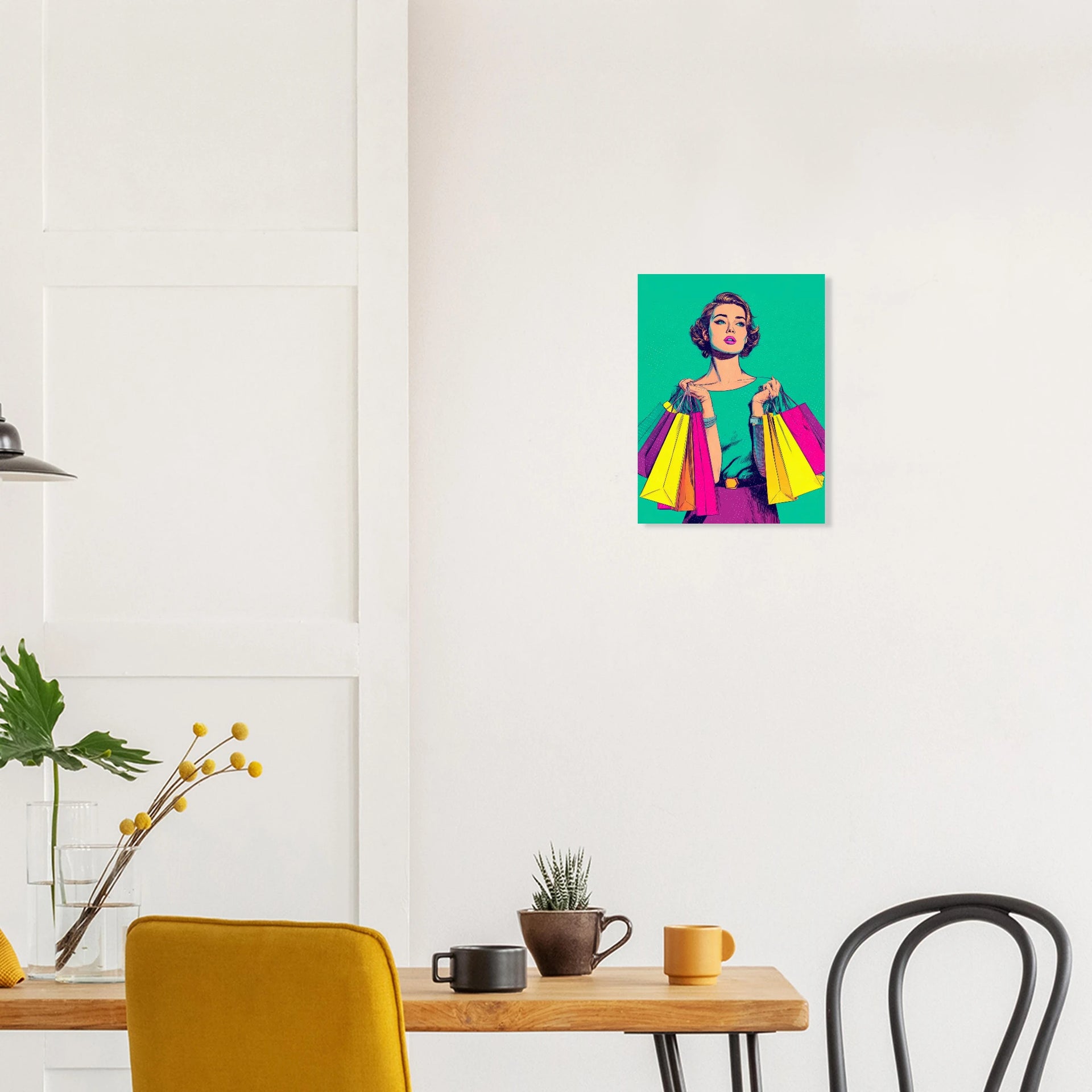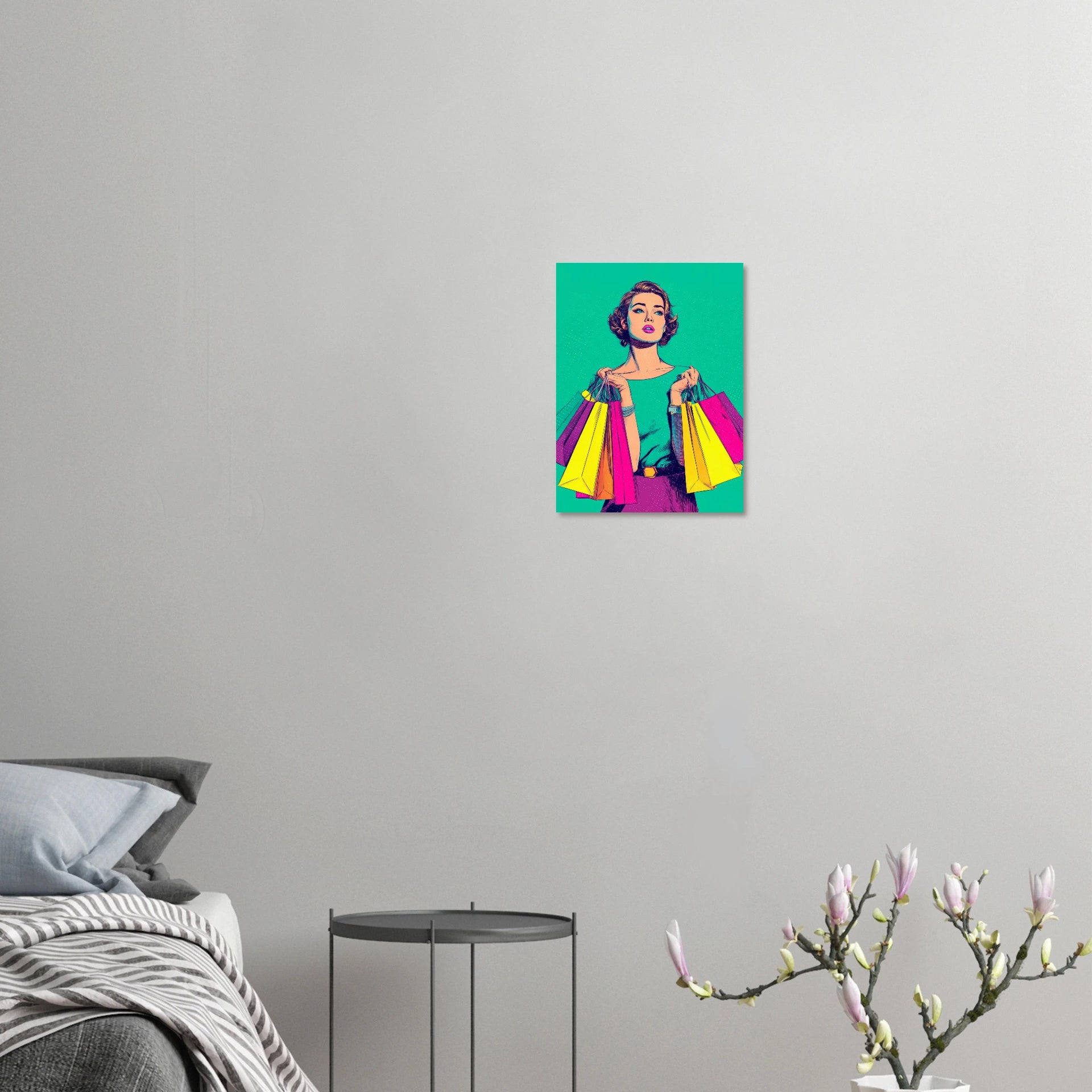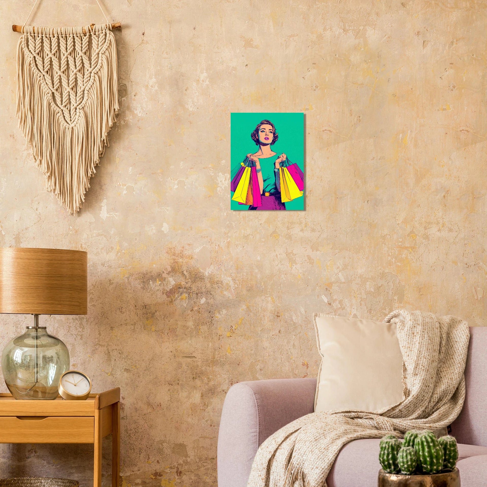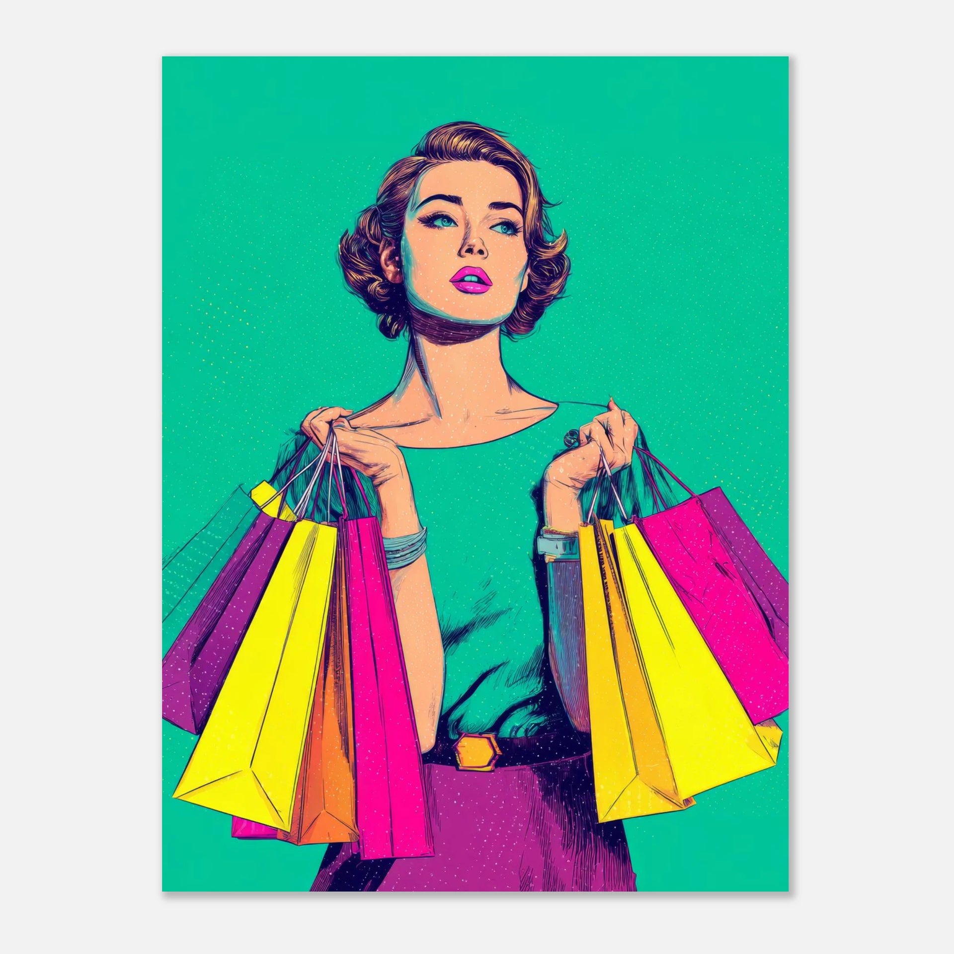 Unleash a splash of vibrant energy and timeless elegance into your home with our captivating Pop Art Shopper poster. Inspired by the dynamic and iconic style of classic pop art, this piece features a stylish woman adorned in bold, vivid colors, embodying the thrill of a successful shopping spree. Her confident gaze and the striking hues of her bags — fuchsia, yellow, and deep purple against a refreshing teal backdrop — create a visually stunning focal point that instantly enlivens any room.