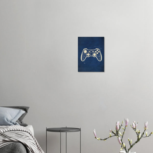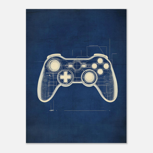 Unleash your inner architect of fun with our exclusive Retro Gaming Controller Blueprint wall art print. This unique piece transforms the iconic gaming controller into a vintage-inspired blueprint, rendered in a crisp, clean pop-art style against a rich, deep blue backdrop. It's the perfect blend of nostalgia and contemporary design, offering a sophisticated nod to your passion for gaming that will elevate any room.