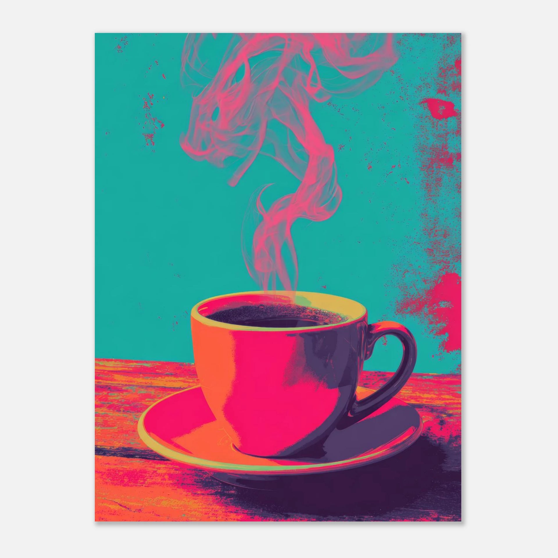 Start your day with a jolt of color and artistic flair! Our "Pop Morning Brew" poster transforms the simple pleasure of a hot cup of coffee into a captivating visual statement. Featuring an electrifying palette of neon pink, fiery orange, deep teal, and rich purple, this print brings a burst of surreal energy to any room. The mesmerizing steam rising from the cup adds a dynamic, almost ethereal touch, making it a perfect conversation starter for art lovers and coffee enthusiasts alike.