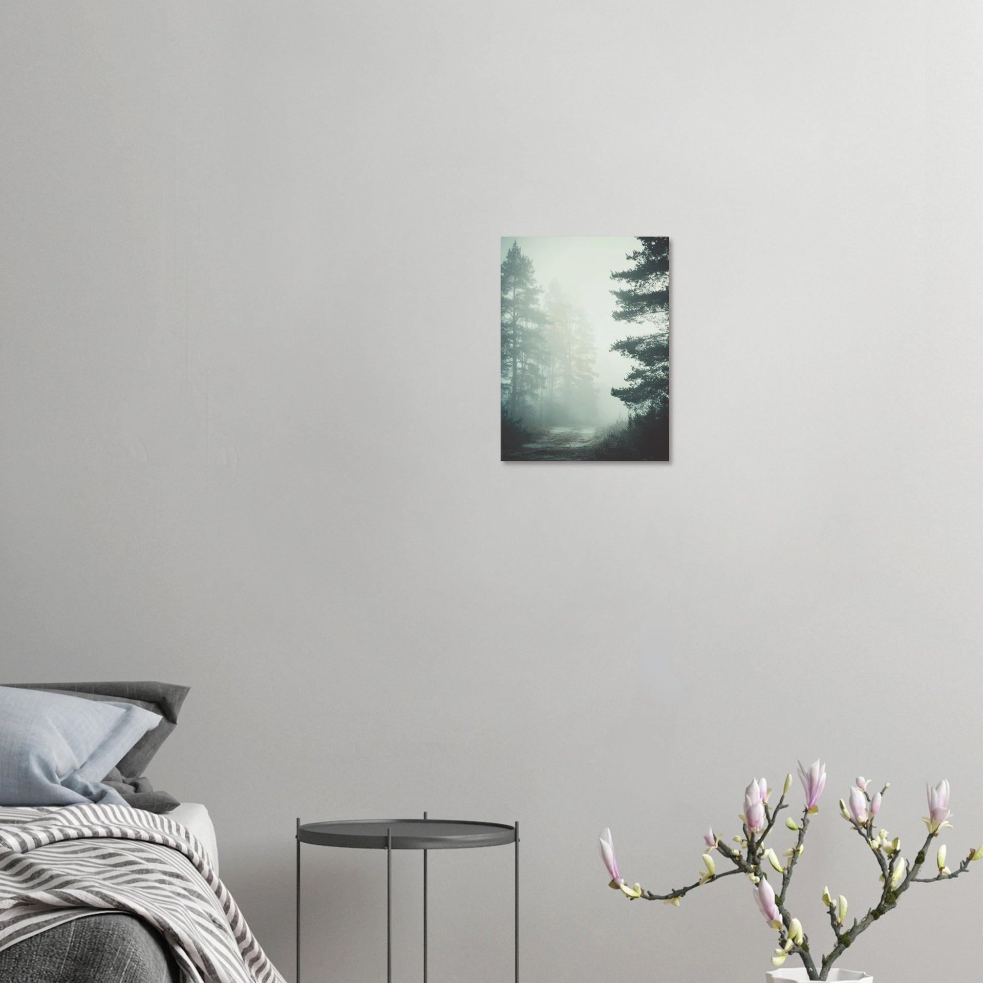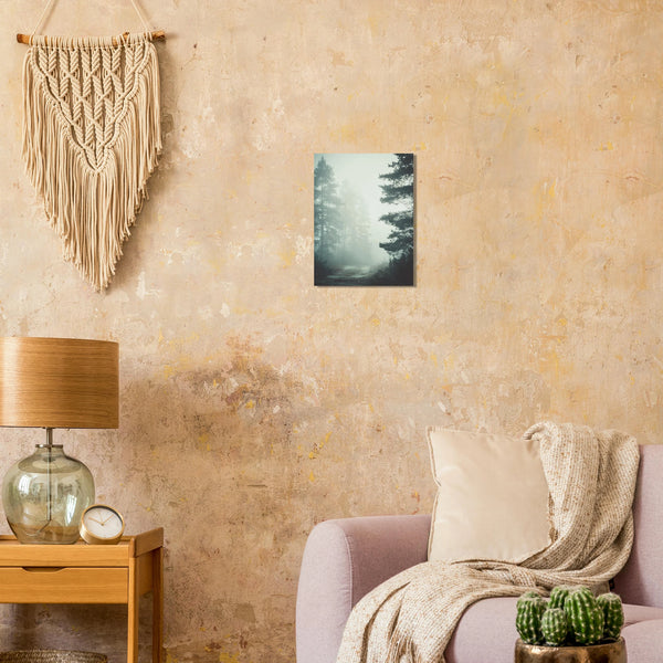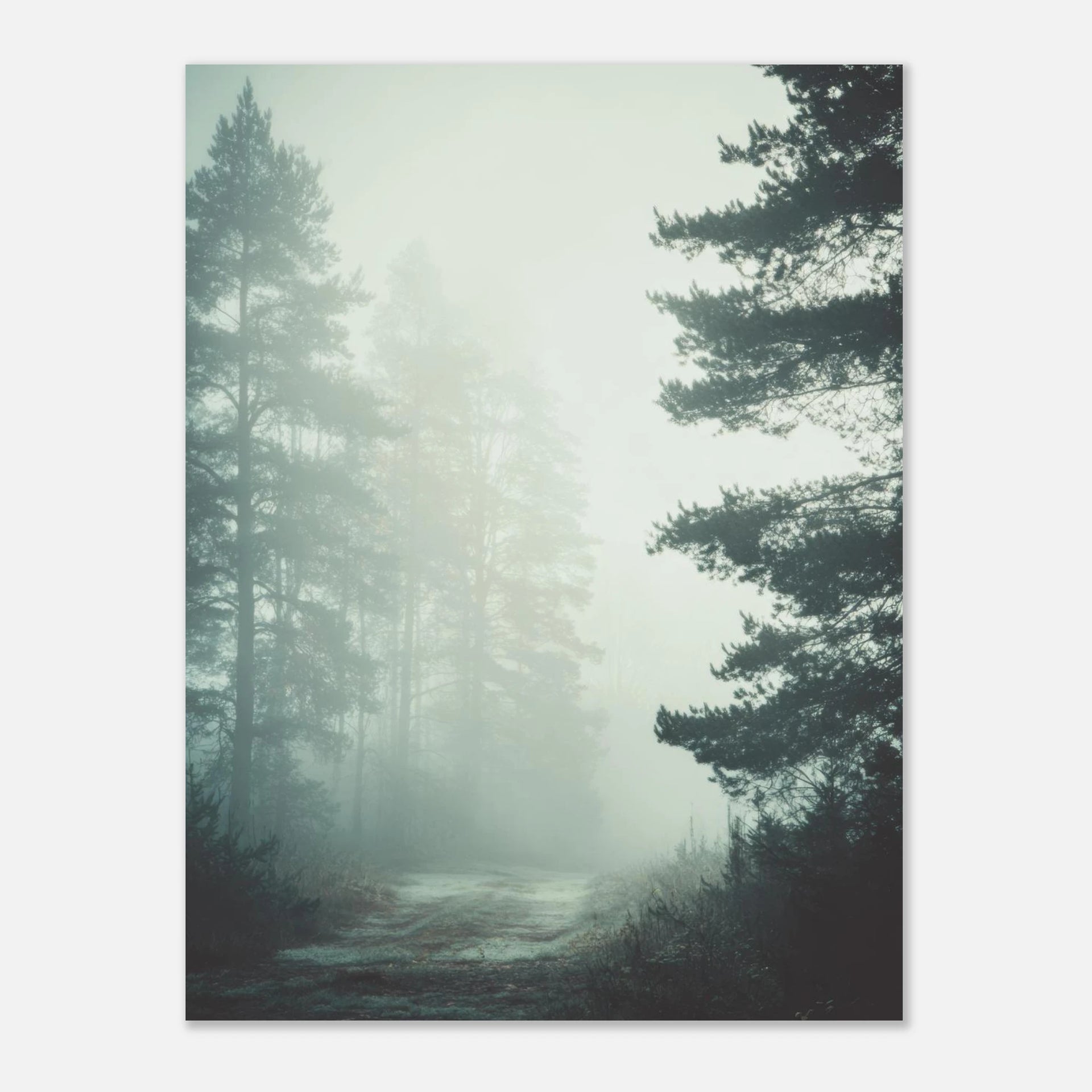 Step into a realm of serene mystery with our 'Mystical Foggy Forest Path' art print. This captivating piece transports you to a tranquil woodland scene shrouded in an ethereal mist, evoking a sense of calm and quiet wonder. The muted tones and soft light create an atmospheric depth, making it a perfect statement for any room seeking a touch of enigmatic beauty and natural charm.