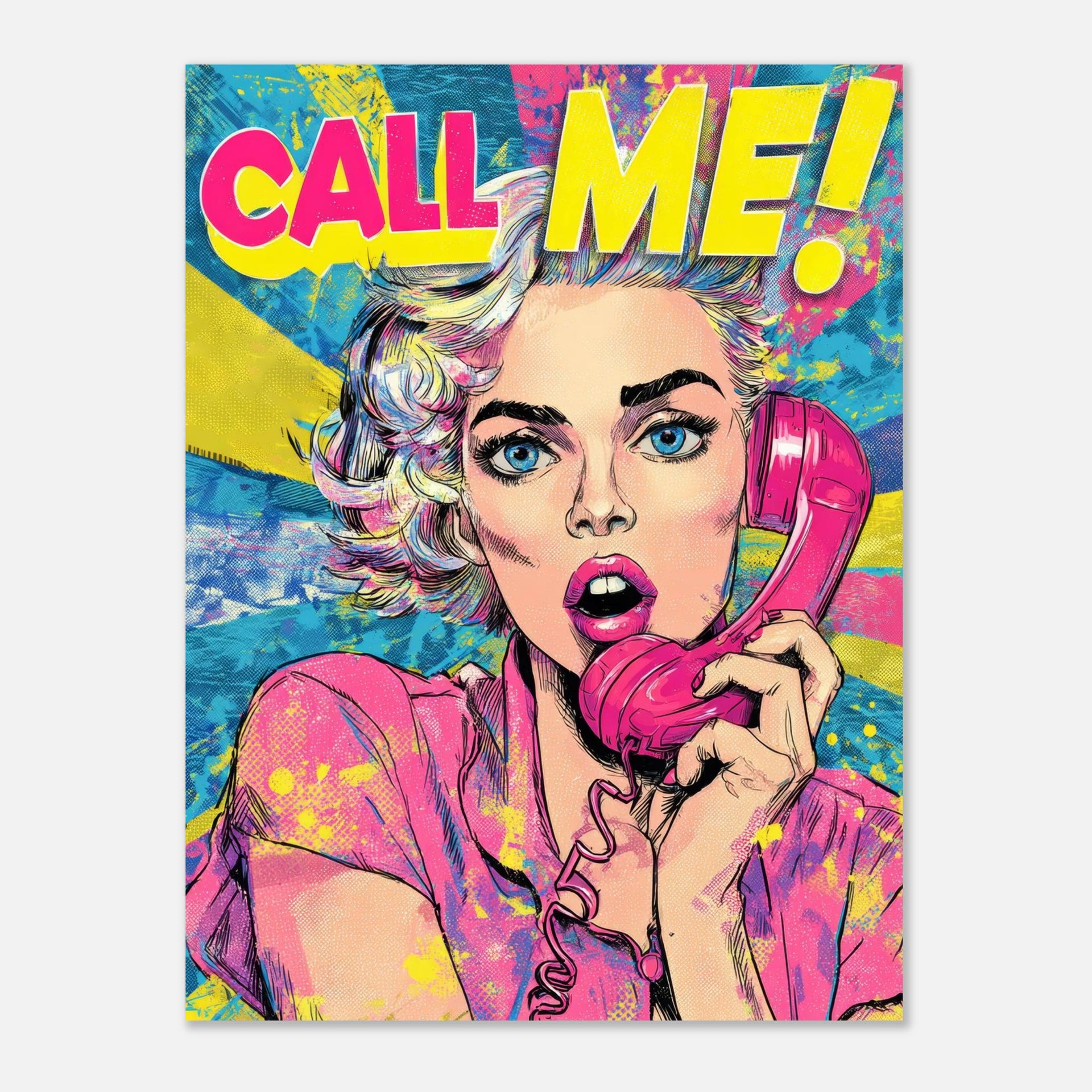 Dial up the drama and inject a jolt of retro-chic into any space with our "CALL ME!" Pop Art Poster. This striking piece captures the essence of classic comic book artistry fused with a modern, rebellious spirit. Featuring a mesmerizing palette of fuchsia, electric blue, and sunny yellow, it's designed to be a conversation starter and a true focal point in your home or office.