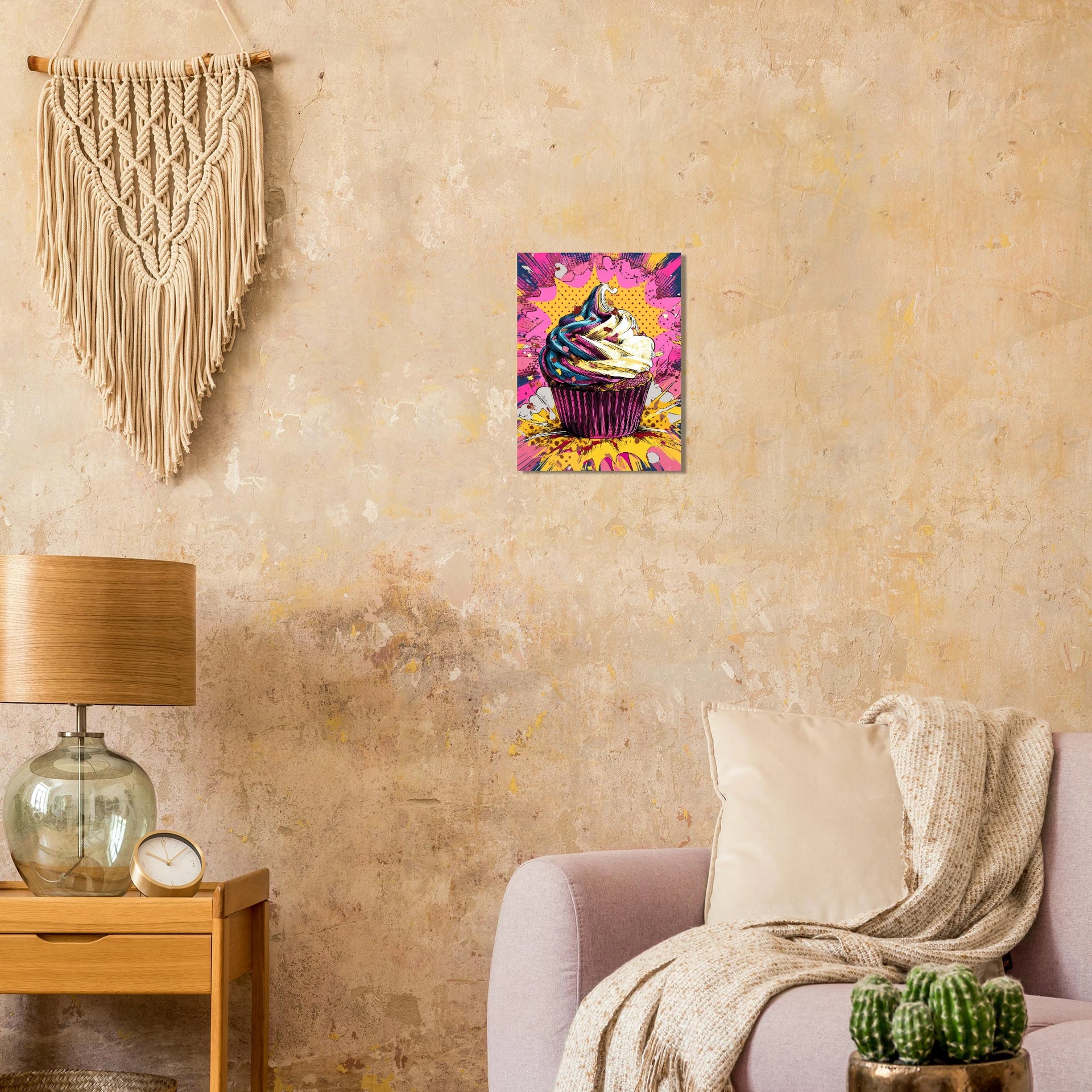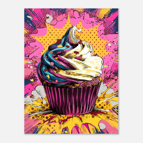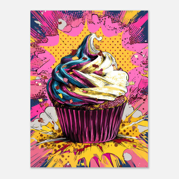 Unleash a burst of joy and color into your space with our Pop Art Cupcake Explosion print! This captivating artwork, reminiscent of classic pop art with a modern twist, features a dynamically frosted cupcake at its heart, surrounded by an energetic splash of pink, yellow, and blue. It’s a deliciously vibrant statement piece, perfect for anyone looking to add a playful yet sophisticated touch to their home or office decor.