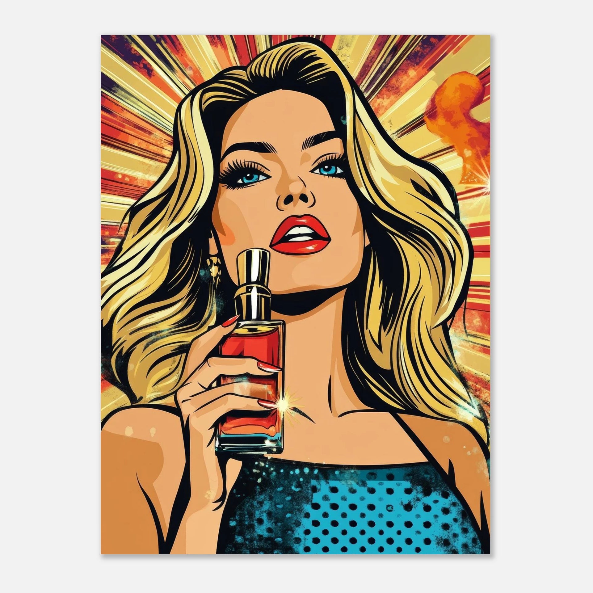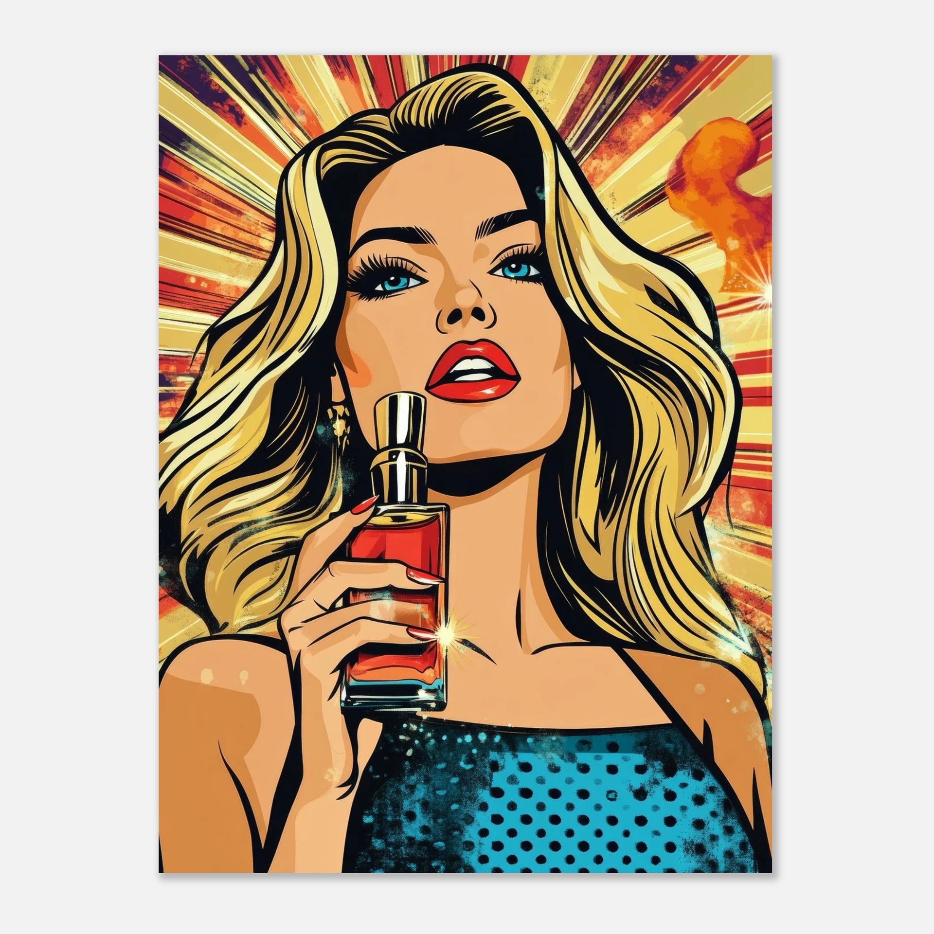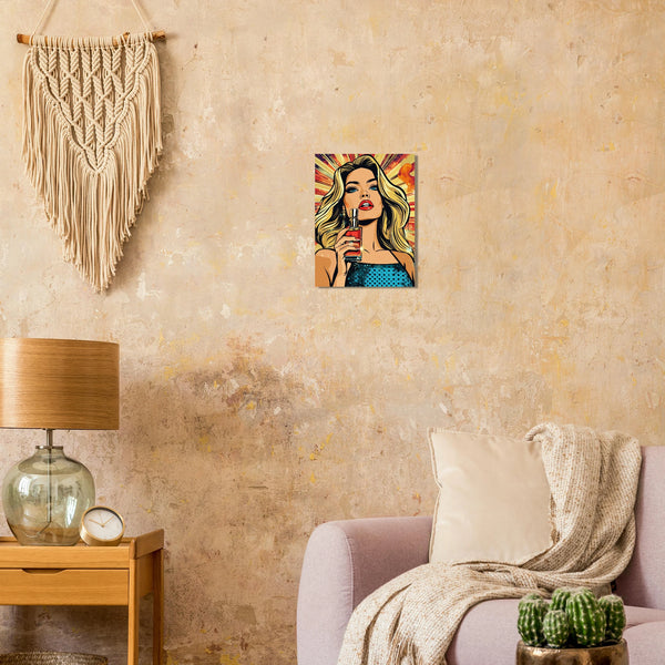 Capture the essence of classic Hollywood allure and a vibrant Pop Art aesthetic with this stunning print. Featuring a captivating blonde bombshell with striking blue eyes and bold red lips, exuding timeless glamour, this artwork brings a burst of retro chic energy to any space. It's the perfect statement piece for art lovers and anyone looking to inject a touch of vintage flair with a modern edge into their home or office.