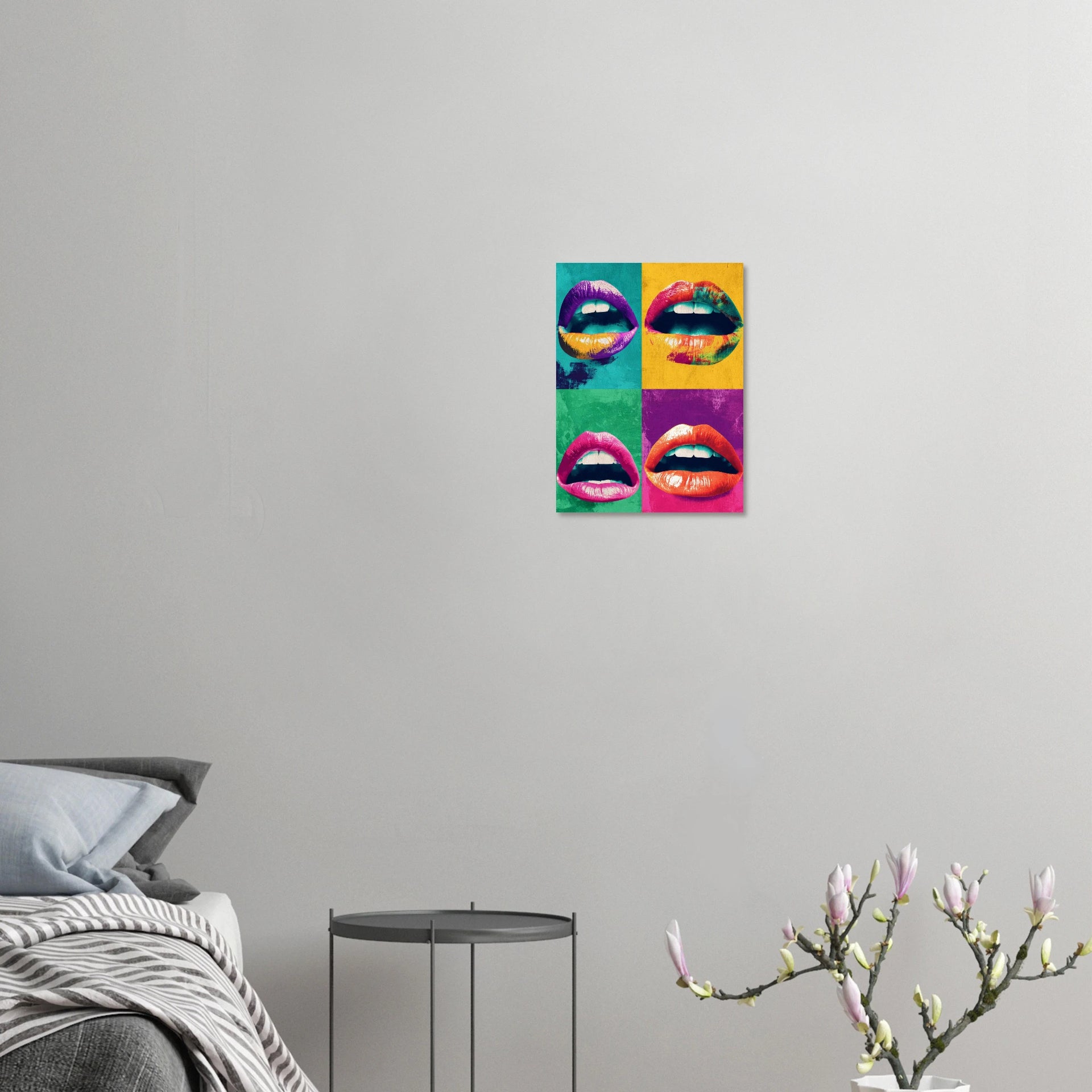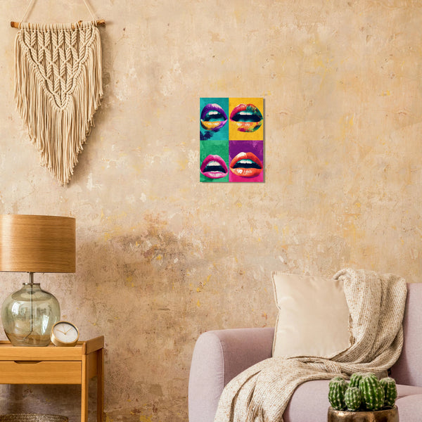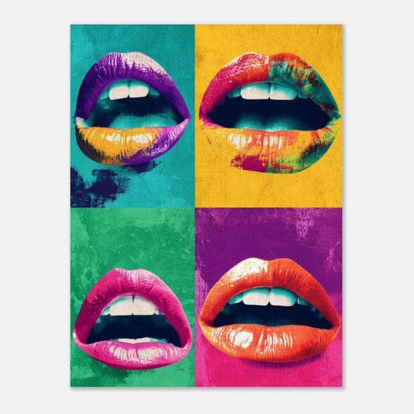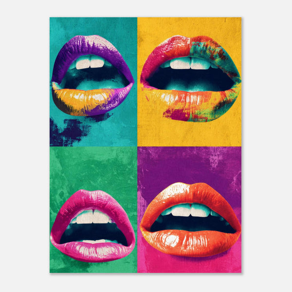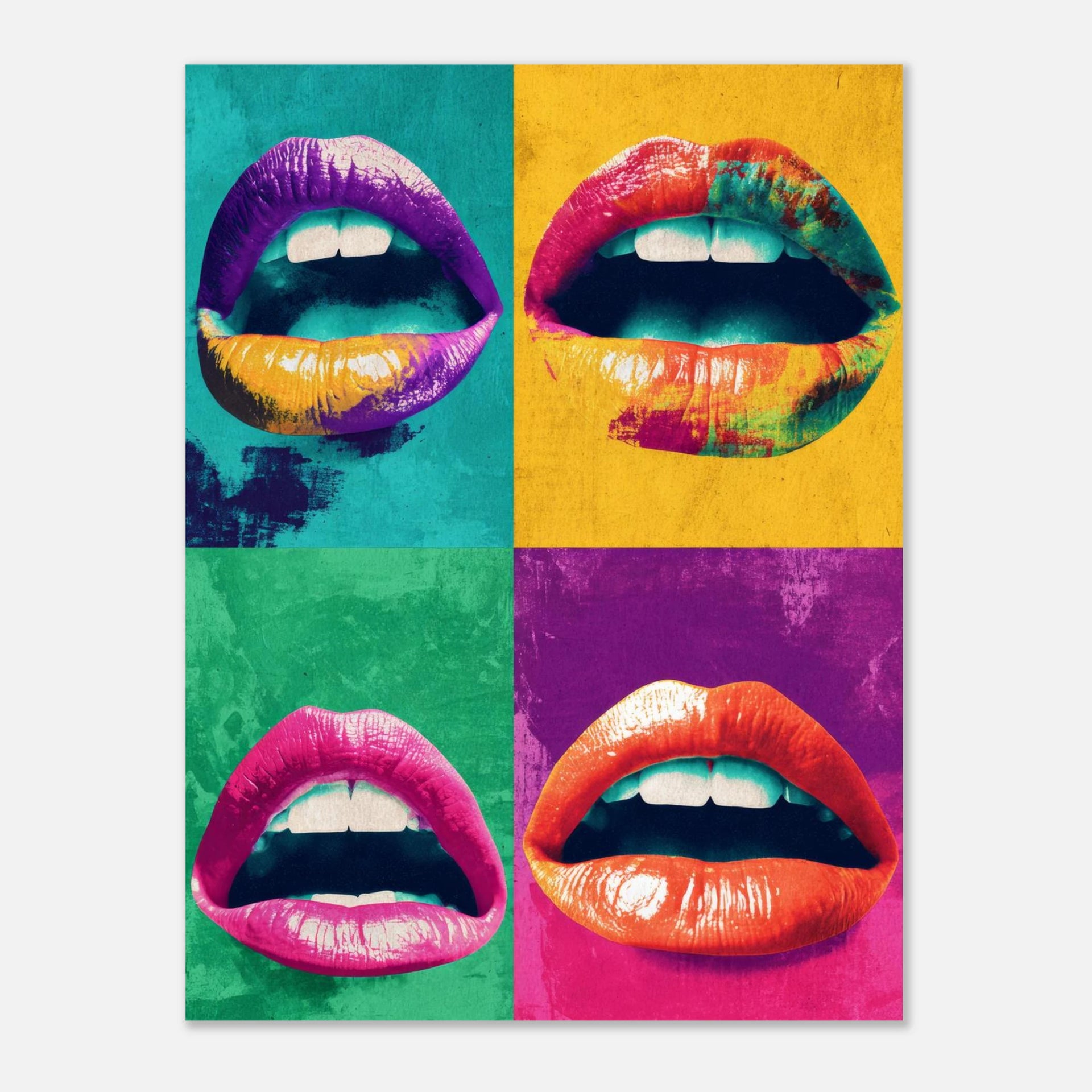 Infuse your space with electrifying energy and iconic style with our "Kissable Lips" Pop Art poster. Inspired by the dynamic and colorful aesthetic of classic pop art, this print features a quartet of expressive lips in striking, contrasting shades. Each quadrant bursts with personality, promising to be a captivating focal point and a conversation starter in any room. It's more than just a print—it's a statement piece that celebrates bold expression.