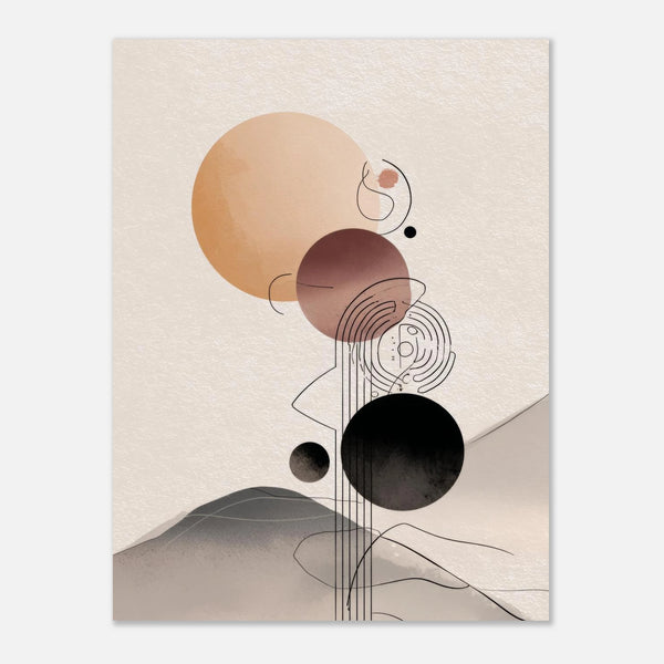 Elevate your living space with the sophisticated serenity of our Abstract Earth Tones Wall Art Print. This modern minimalist piece, featuring a harmonious blend of geometric circles and flowing lines in warm, grounding hues, creates a calming focal point in any room. Inspired by natural landscapes and contemporary design, this artwork adds a touch of understated elegance and thoughtful depth to your home or office décor.