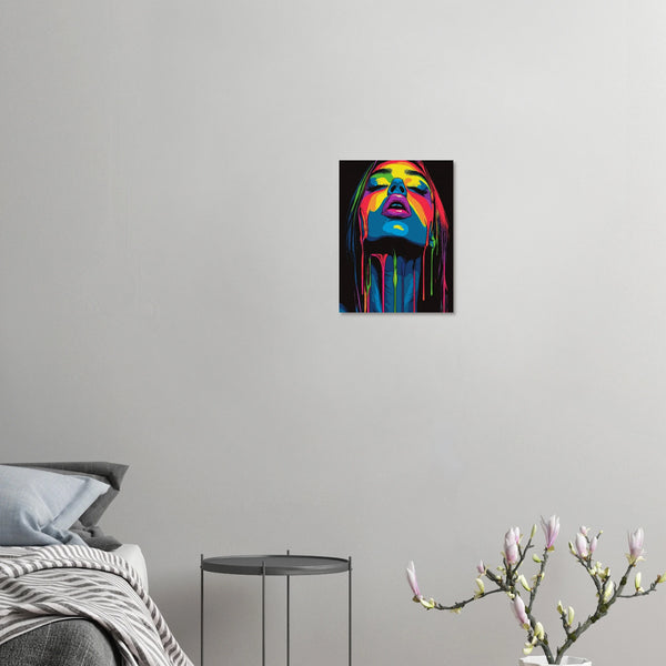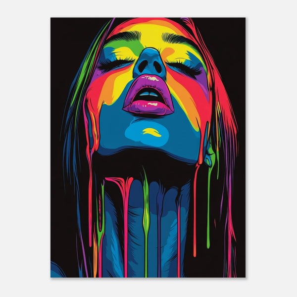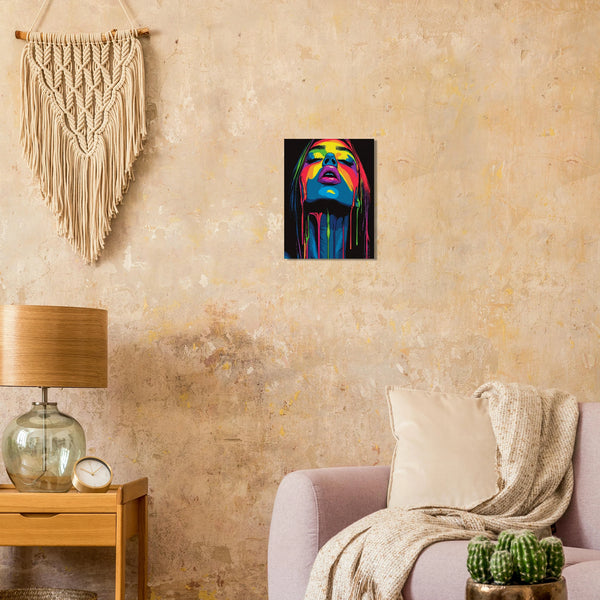 Unleash a cascade of color with our Neon Drip Goddess matte poster, designed to electrify any space. This bold art print transforms walls into a living statement, inviting art lovers to immerse themselves in vibrant pigments and modern intensity.