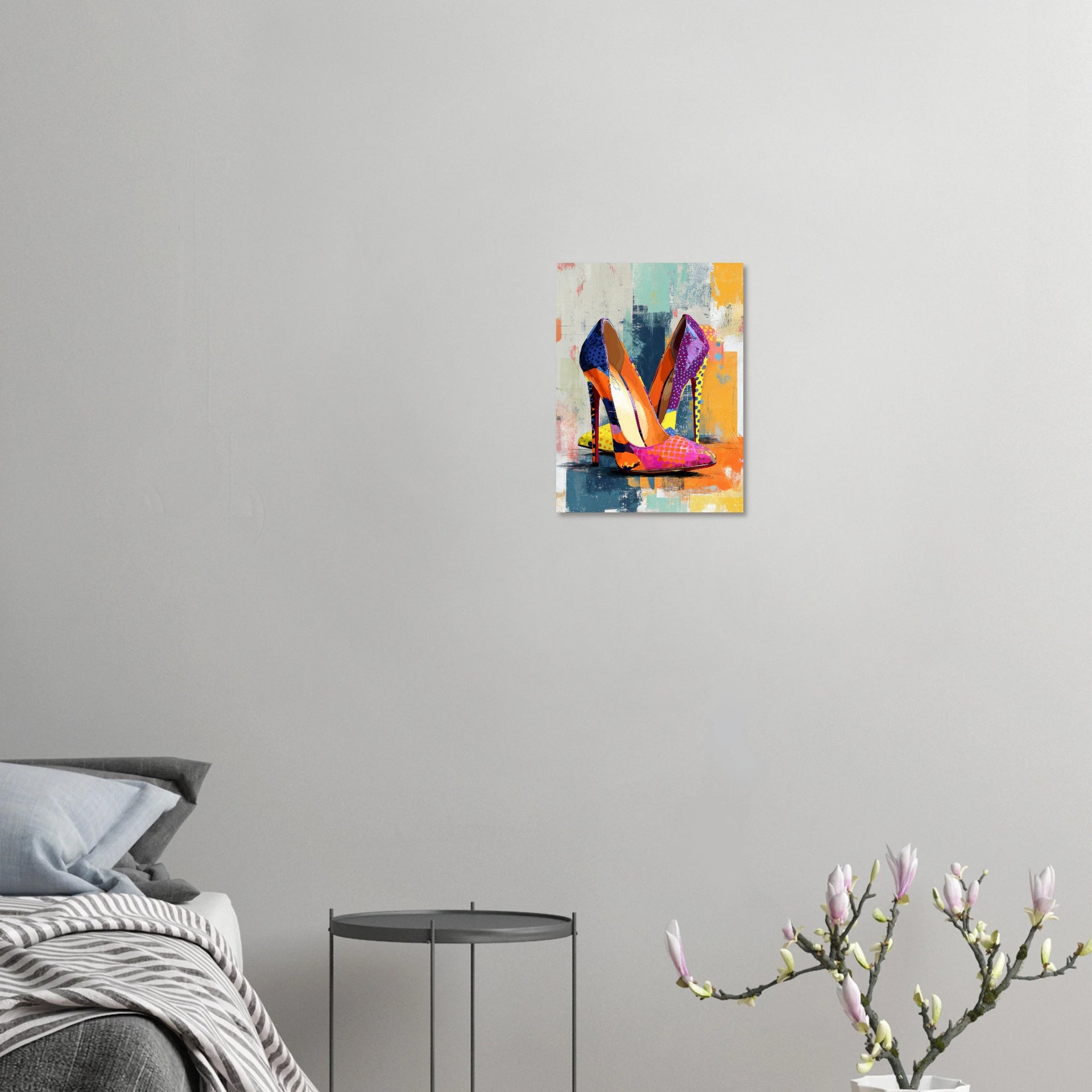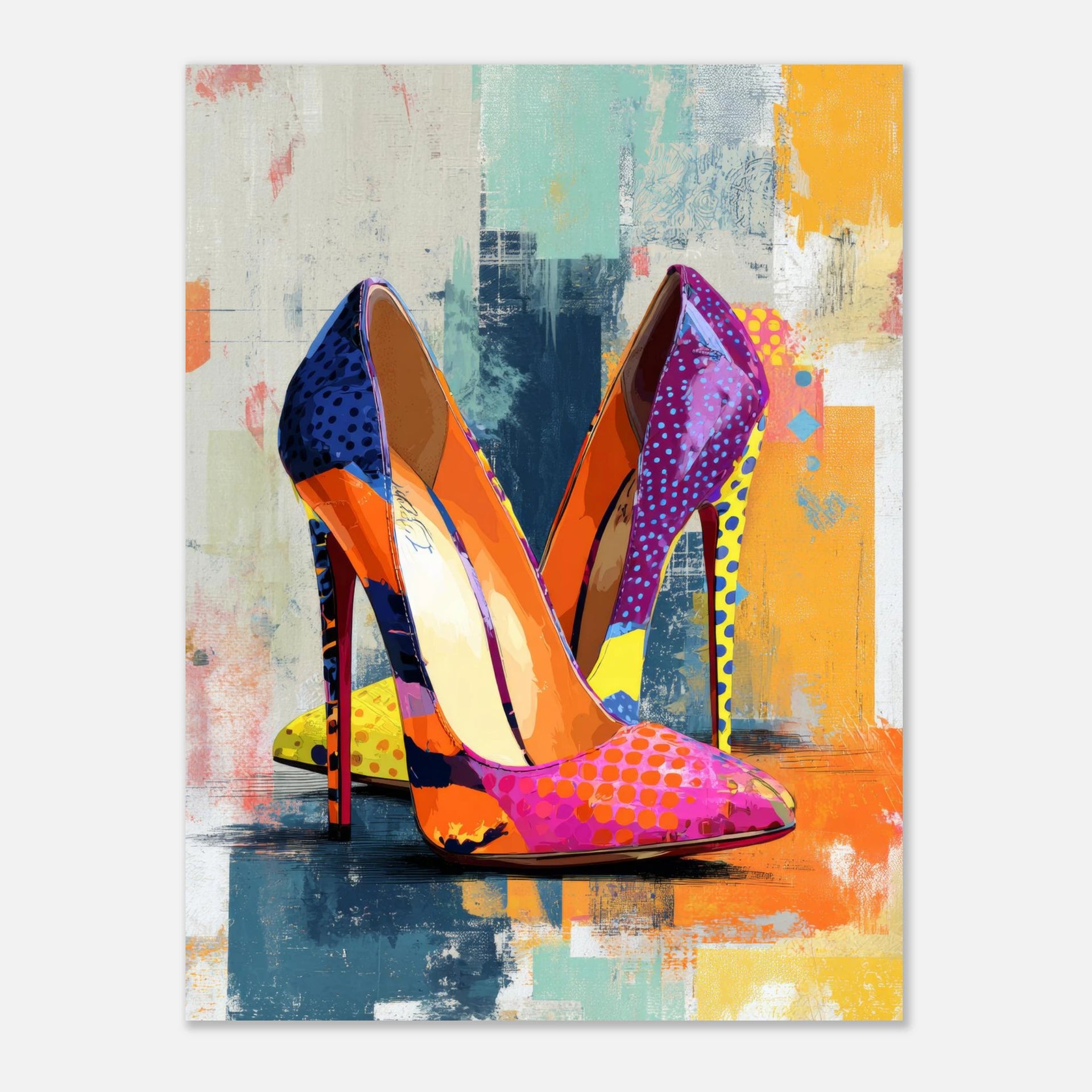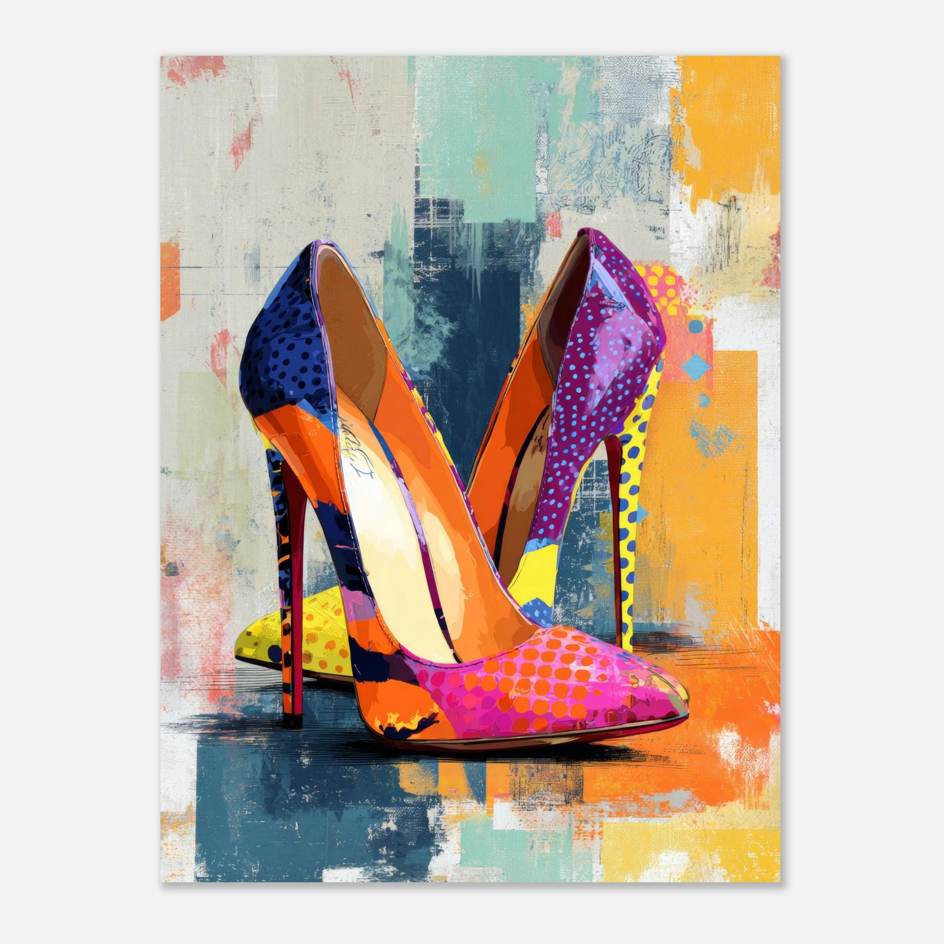 Unleash a surge of color and energy in any room with this vibrant pop-art high heels print. Bold splashes of orange, pink, blue and yellow collide in an eye-catching composition that celebrates style and confidence. It’s an instant conversation starter for fashion lovers and art enthusiasts alike.