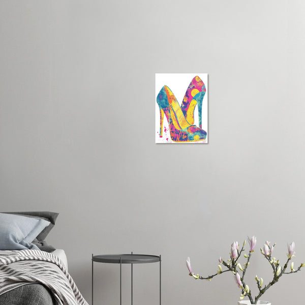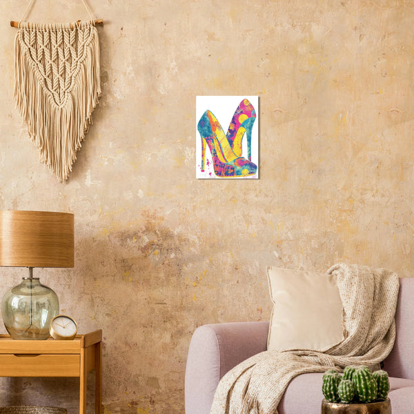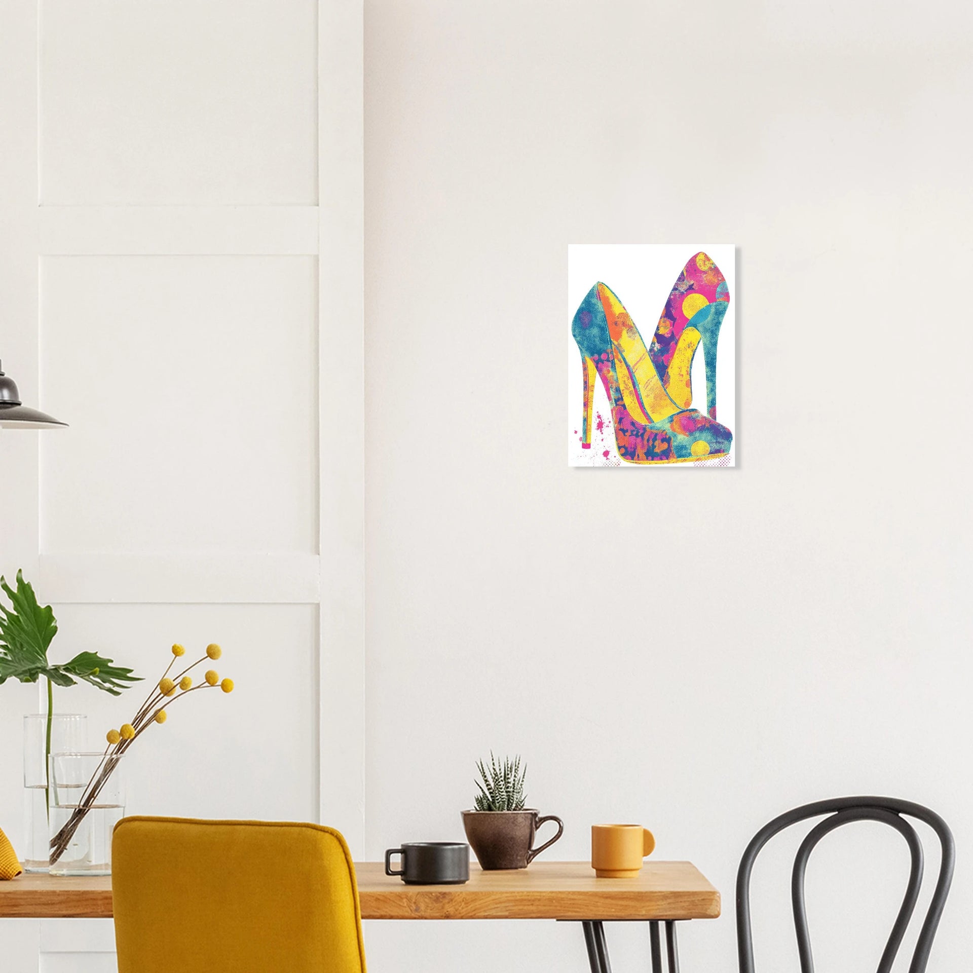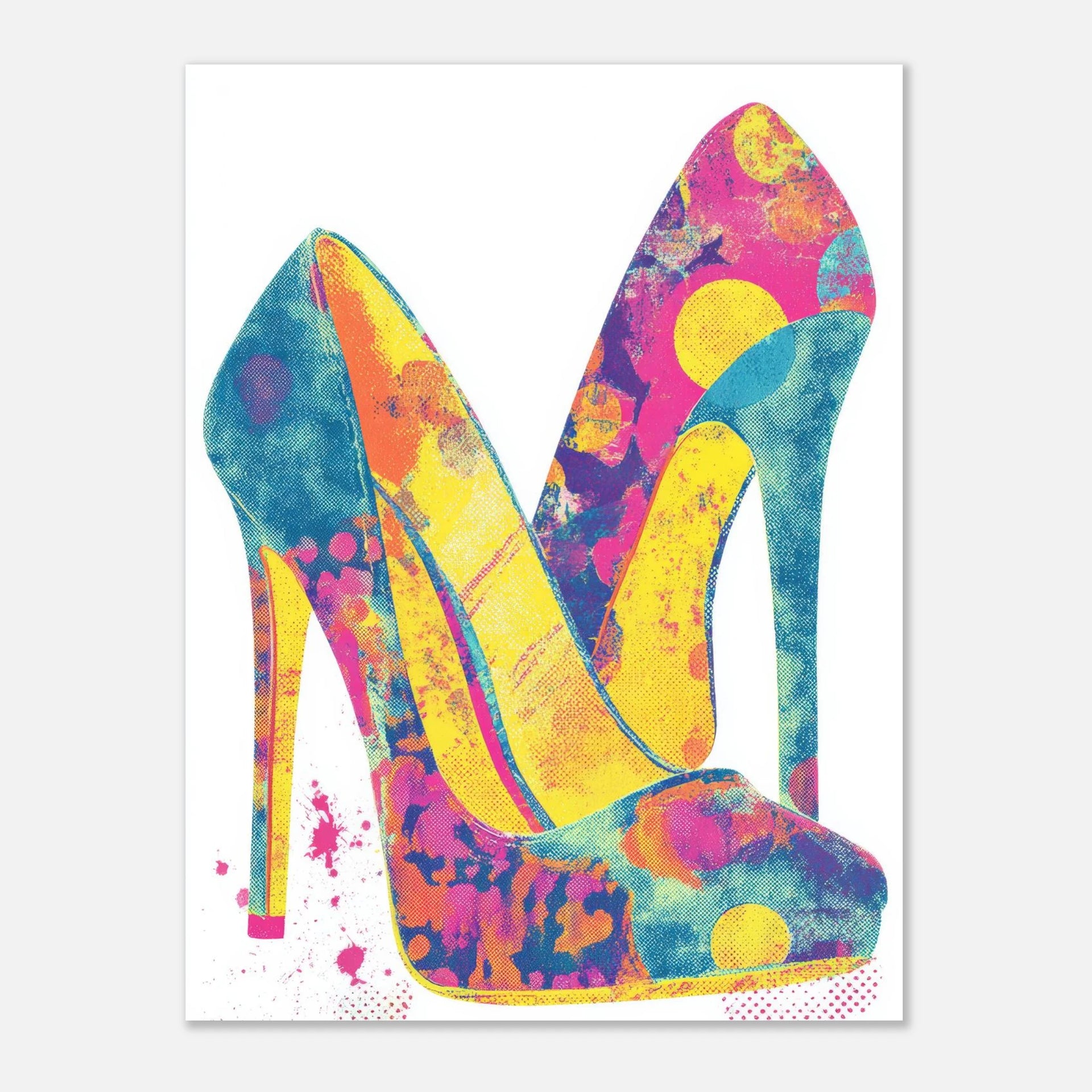 Available in a range of sizes—from an intimate 12x16" to a commanding 30x40"—you can tailor this vibrant art piece to perfectly fit your desired space. Elevate your walls with this unique blend of fashion and abstract art. Select your ideal size and bring home this stunning Pop Art High Heels print today!