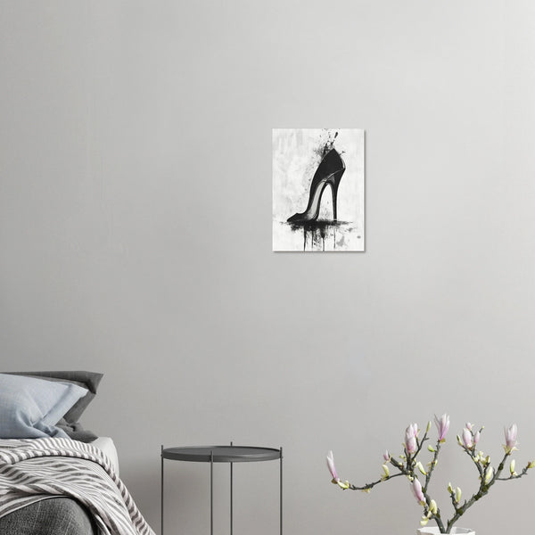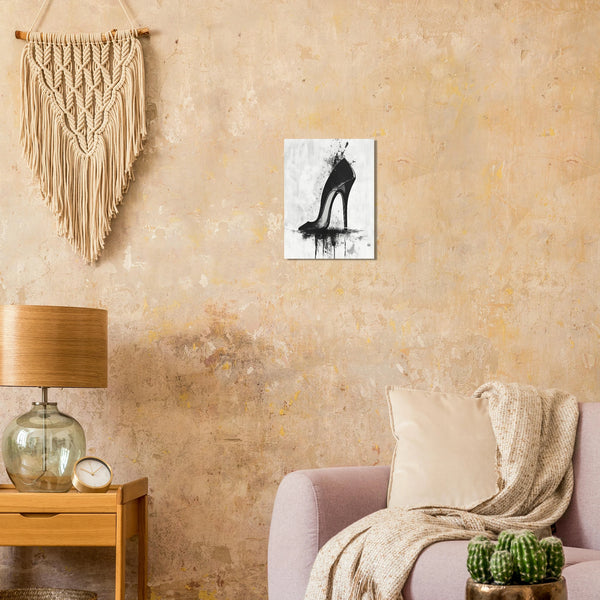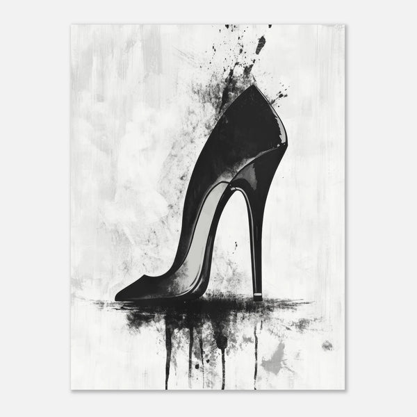 Step into sophisticated style with our captivating Abstract High Heel Art Print. This unique piece features a striking black high heel, rendered with expressive, painterly strokes and dynamic splatters that evoke a sense of edgy elegance. It’s the perfect addition for anyone looking to infuse their living space, bedroom, or dressing area with a bold, fashion-forward statement and a touch of modern artistry.