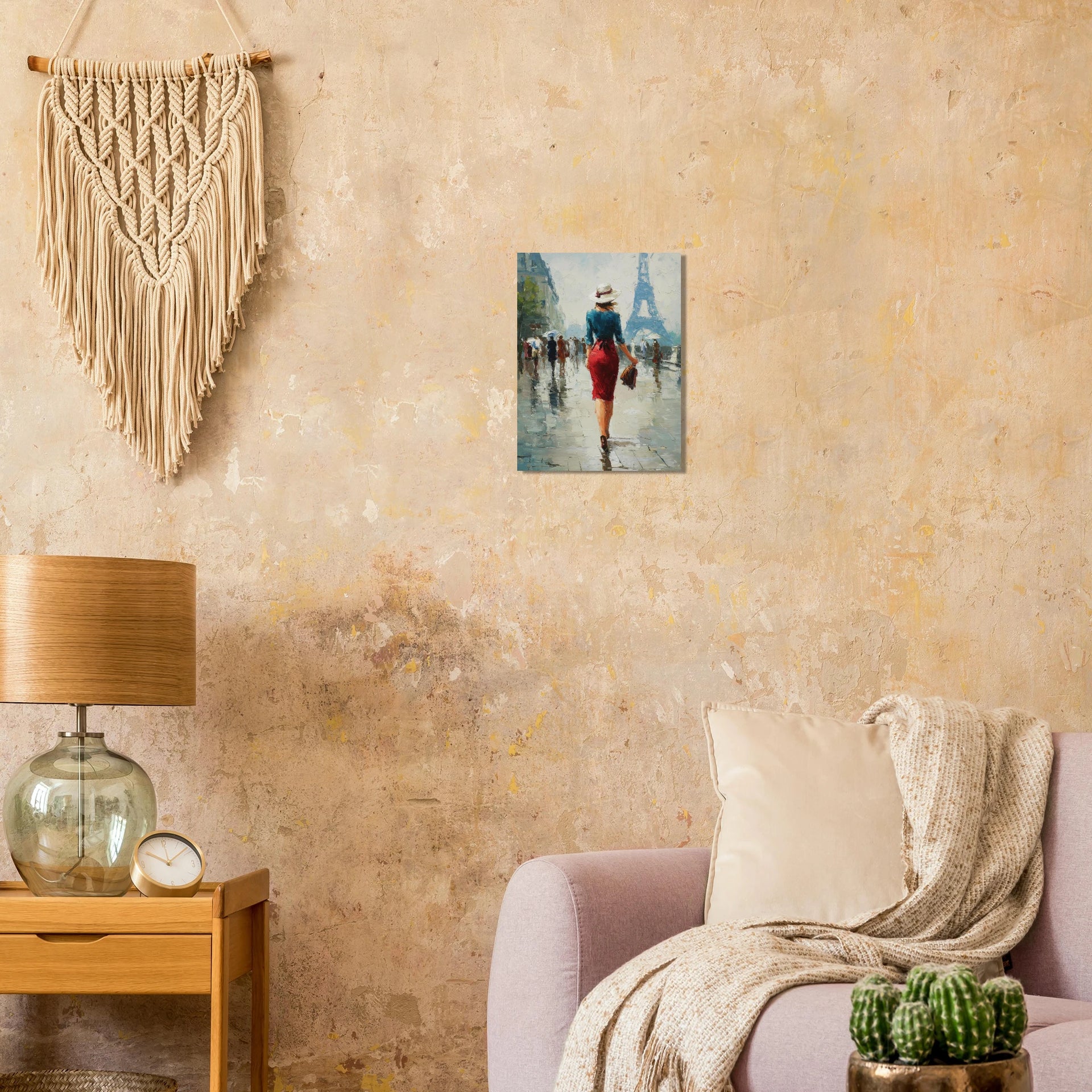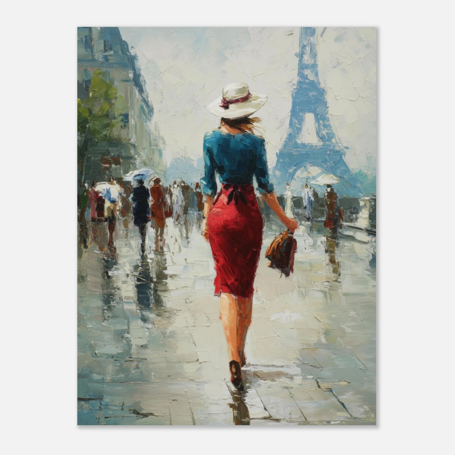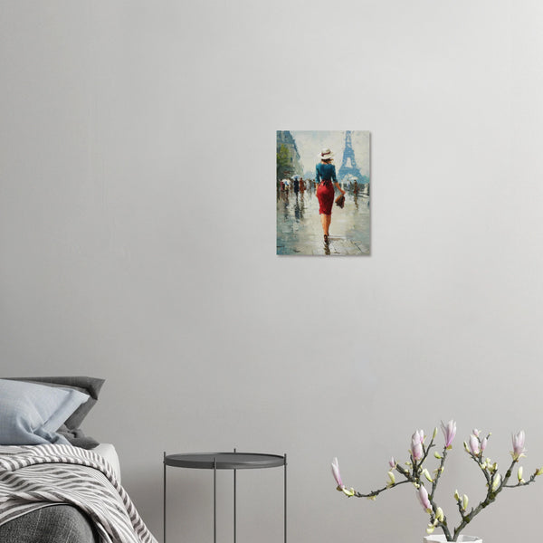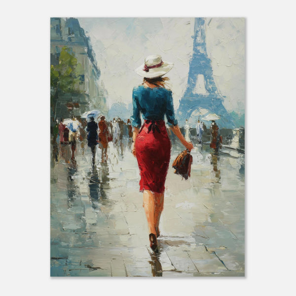 Immerse yourself in the romantic allure of a Parisian afternoon with this captivating impressionist art print. Evoking the sophisticated charm of a solitary figure gracefully navigating the city streets, with the iconic Eiffel Tower shimmering...