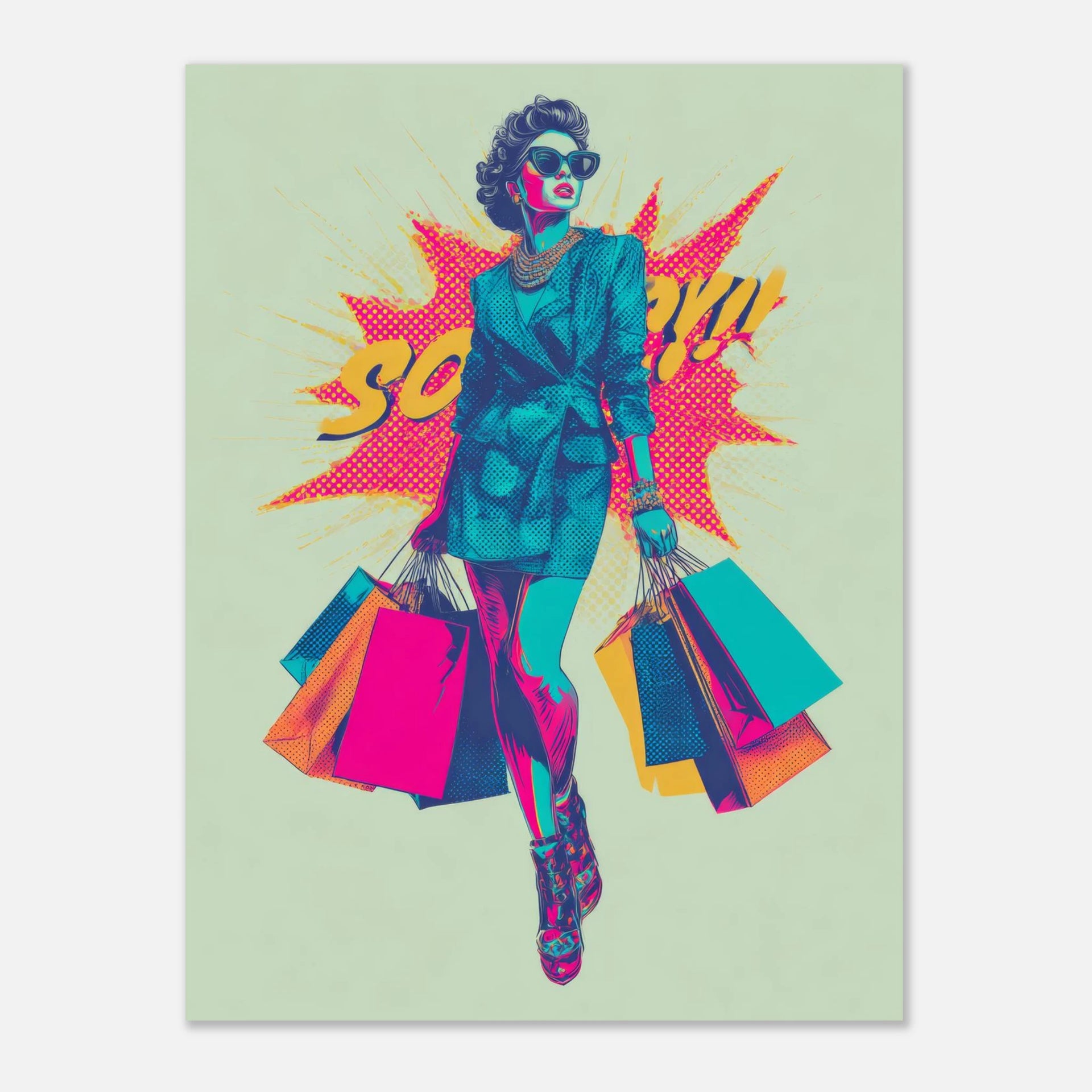 Unleash your inner fashionista with our "Shopping Spree" poster, a vibrant homage to iconic pop art style and the thrill of retail therapy. This eye-catching print features bold colors and dynamic lines, capturing the essence of effortless cool and confident glamour. It's the perfect statement piece for anyone who believes life's too short for boring walls.