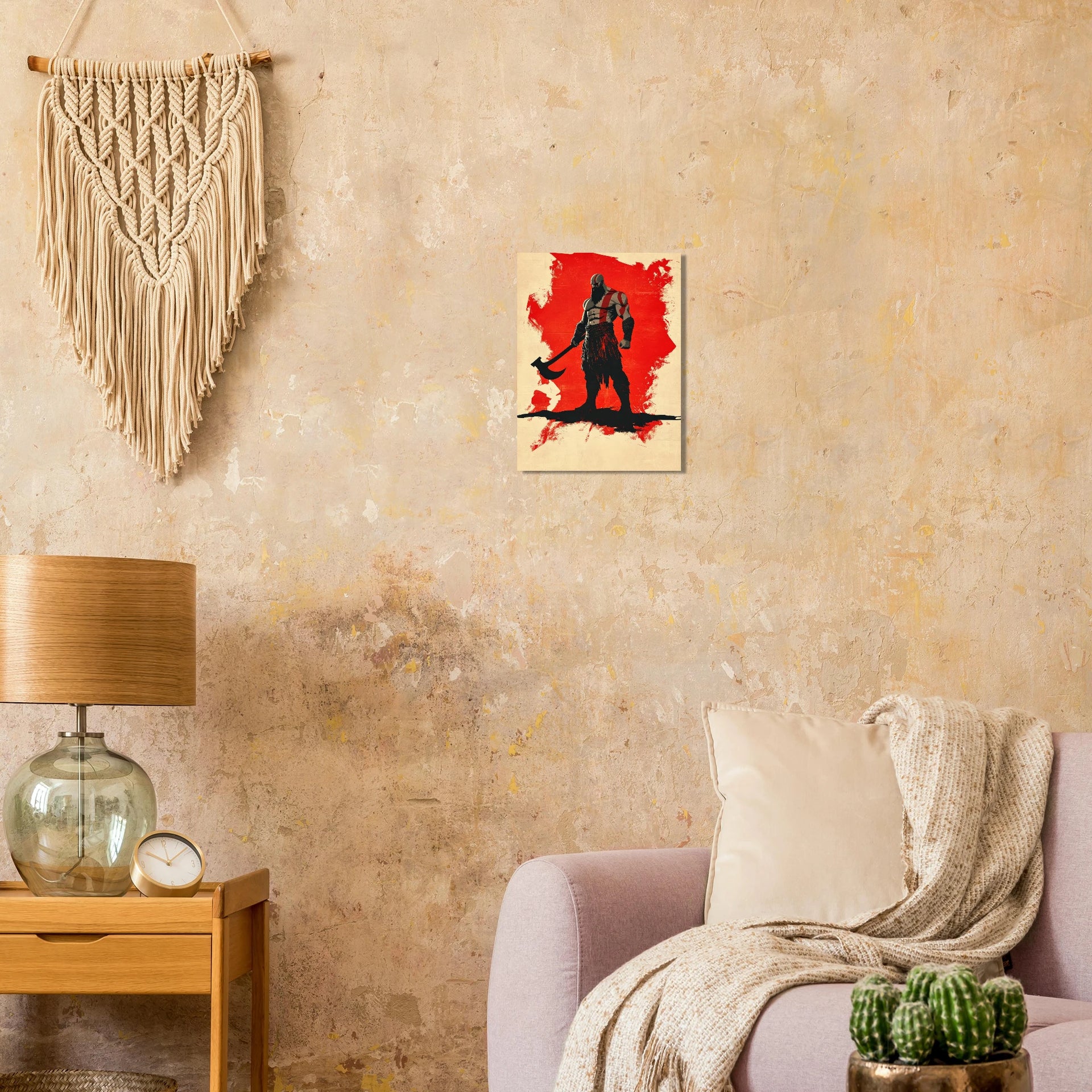 Unleash the spirit of a legendary warrior with this striking pop art print, perfect for any fan of epic tales and bold aesthetics. Dominated by a powerful silhouette against a vibrant, expressive red backdrop, this artwork captures intensity and raw energy. The minimalist yet impactful design makes it a focal point in any room, adding a touch of modern strength and an artistic flair that commands attention.